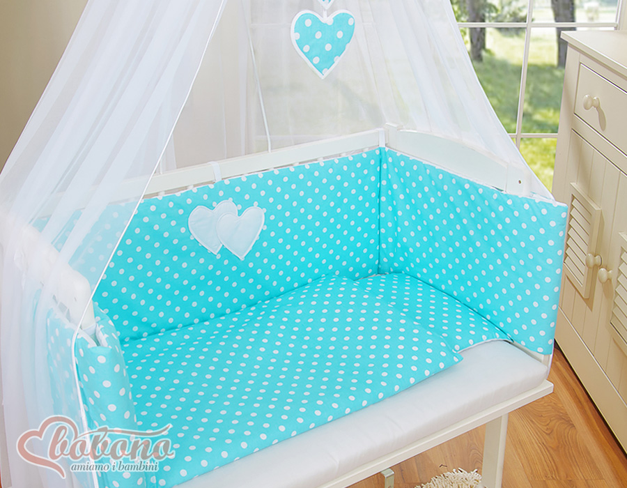 Lit Cododo avec Ciel Matelas et Linge Complet Turquoise à Pois Cœurs