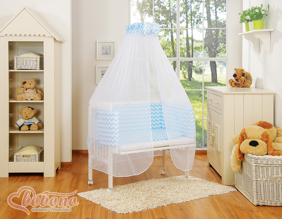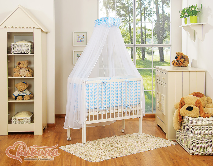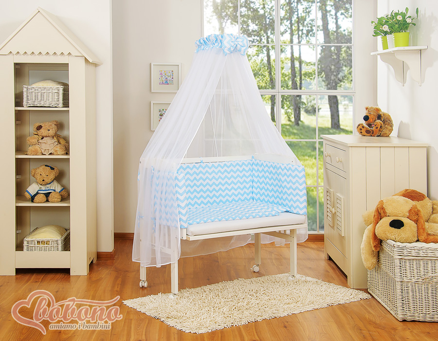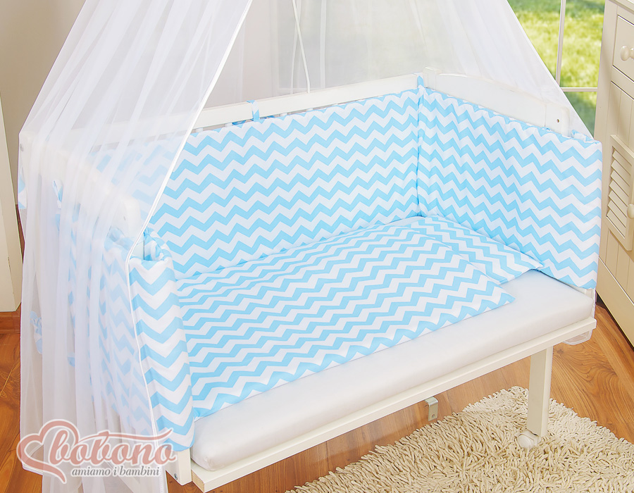 Bébé chambre » Lits bébé 120x60 cm » Lits de cododo » Lits de cododo » Lit de Cododo avec Linge Complet Bleu Chevron