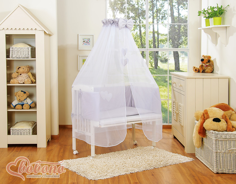 Bébé chambre » Lits bébé 120x60 cm » Lits de cododo » Lits de cododo » Lit de Cododo avec Linge Complet Gris Cœurs