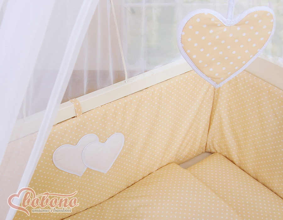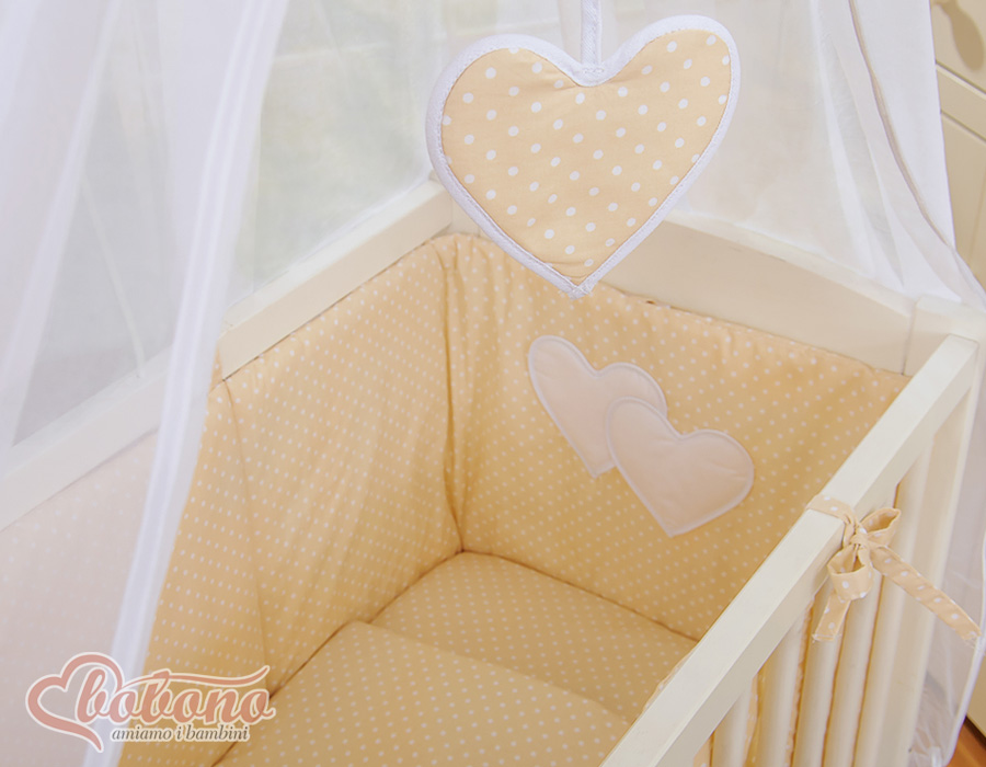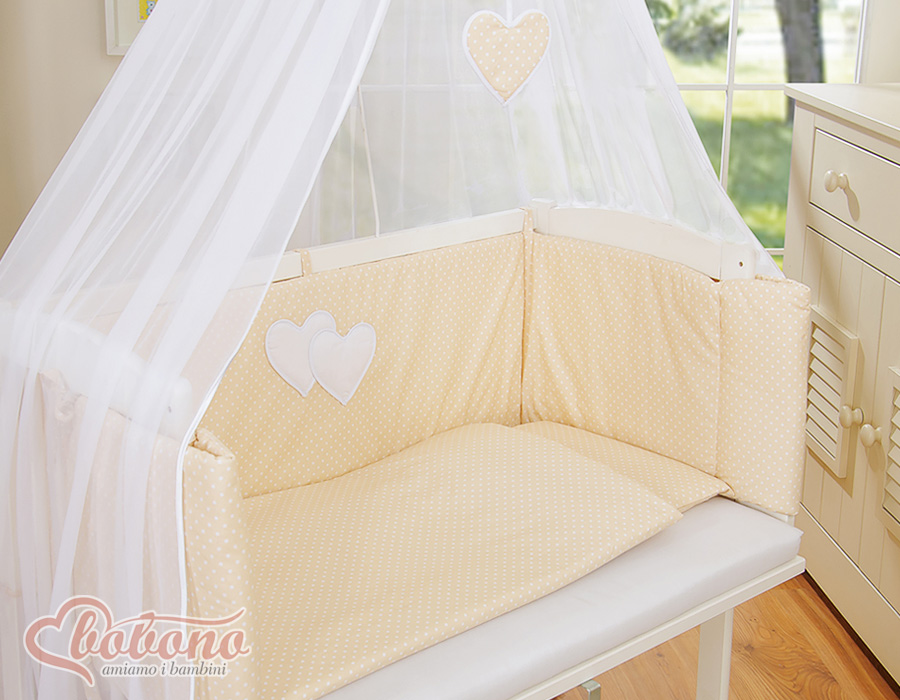 Bébé chambre » Lits bébé 120x60 cm » Lits de cododo » Lits de cododo » Lit de Cododo avec Matelas et Ensemble de Linge de Lit Beige à Pois Cœurs