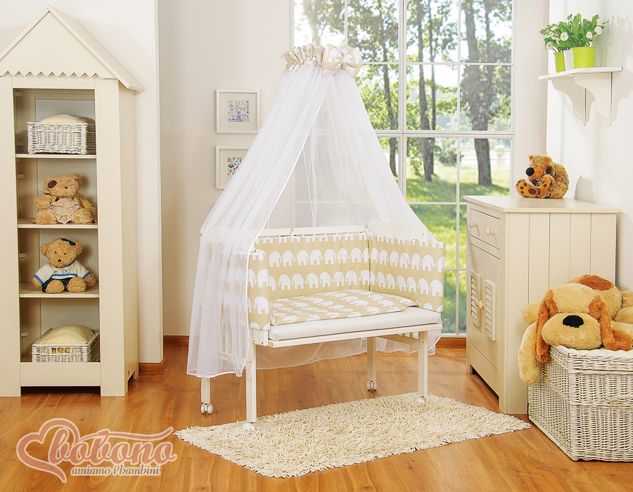Nous vous présentons un merveilleux lit de cododo fait de matériaux non polluants. Il est muni d'une poignée en métal pour l'attacher au lit des parents.