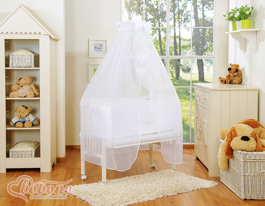 Bébé chambre » Lits bébé 120x60 cm » Lits de cododo » Lits de cododo » Lit de Cododo avec Matelas et Ensemble de Linge de Lit Blanc Cœurs