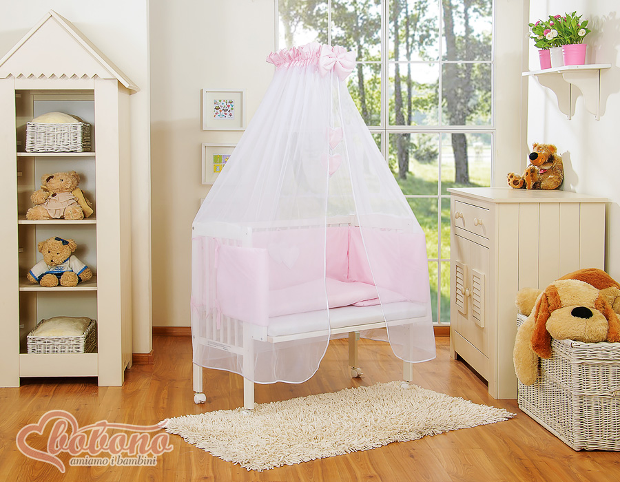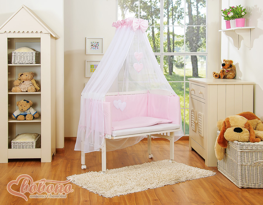 Bébé chambre » Lits bébé 120x60 cm » Lits de cododo » Lits de cododo » Lit de Cododo avec Matelas et Ensemble de Linge de Lit Rose Cœurs