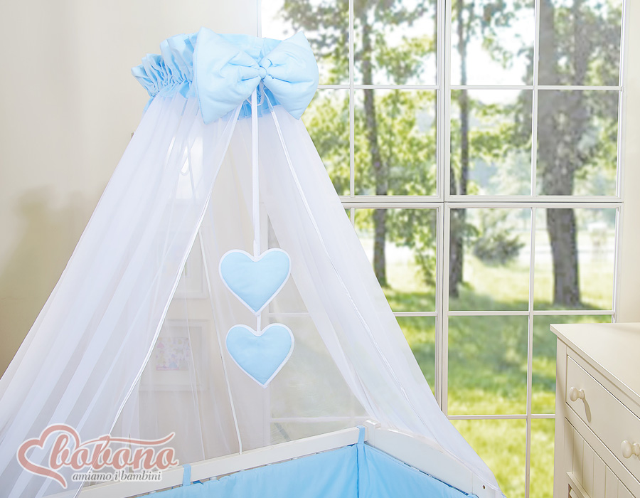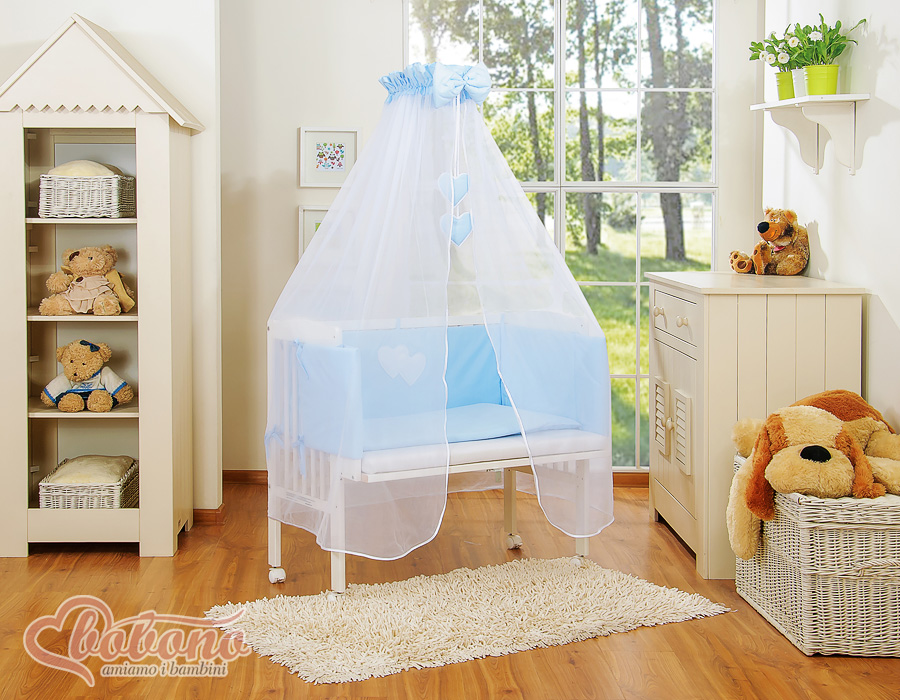 Bébé chambre » Lits bébé 120x60 cm » Lits de cododo » Lits de cododo » Lit de Cododo avec Textile Complet Bleu Cœurs