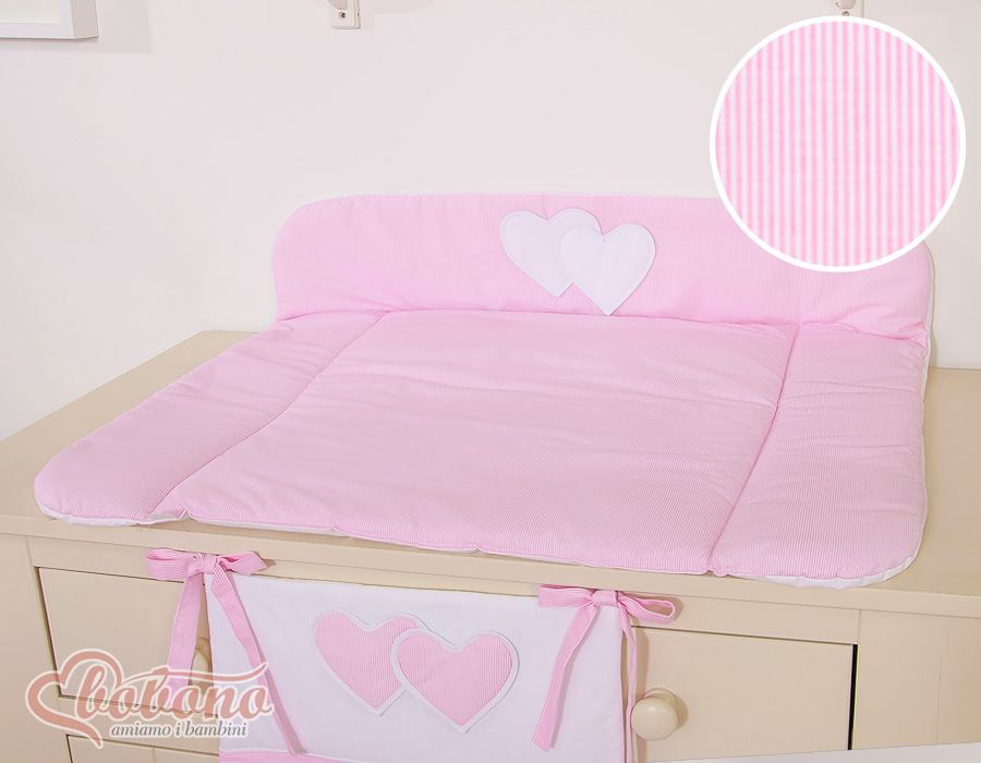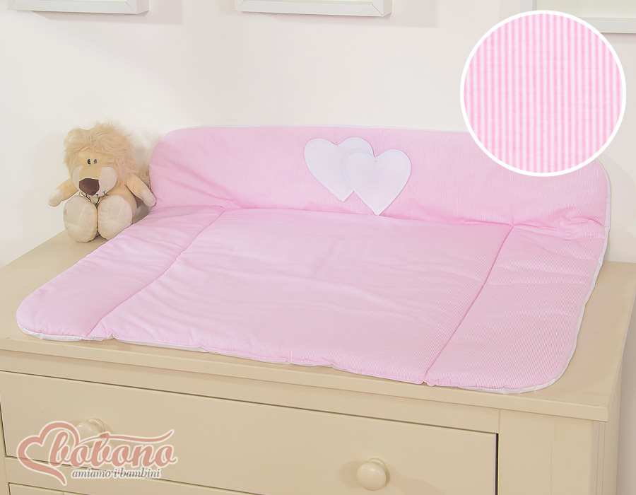 Bébé chambre » Linge de lit bébé » Linge de lit bébé Cœurs » Matelas à langer » Matelas à Langer en Coton Rose Rayures Cœurs