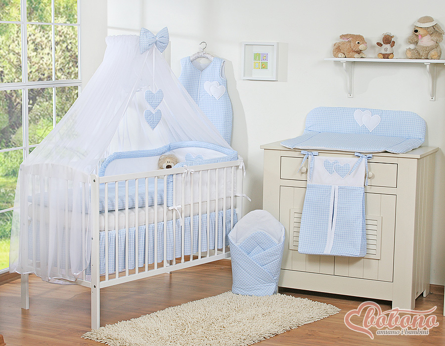 Bébé chambre » Linge de lit bébé » Linge de lit bébé Cœurs » Moustiquaire de lit bébé » Moustiquaire de Lit Bébé Bleu à Carreaux Cœurs
