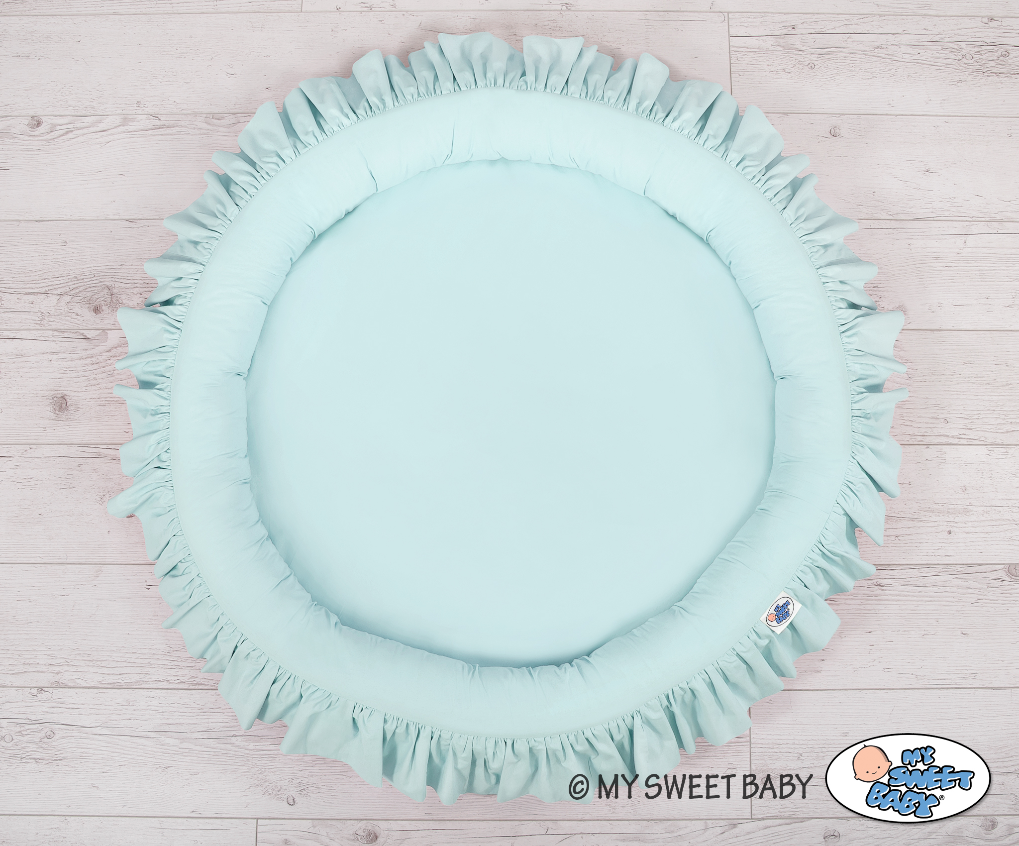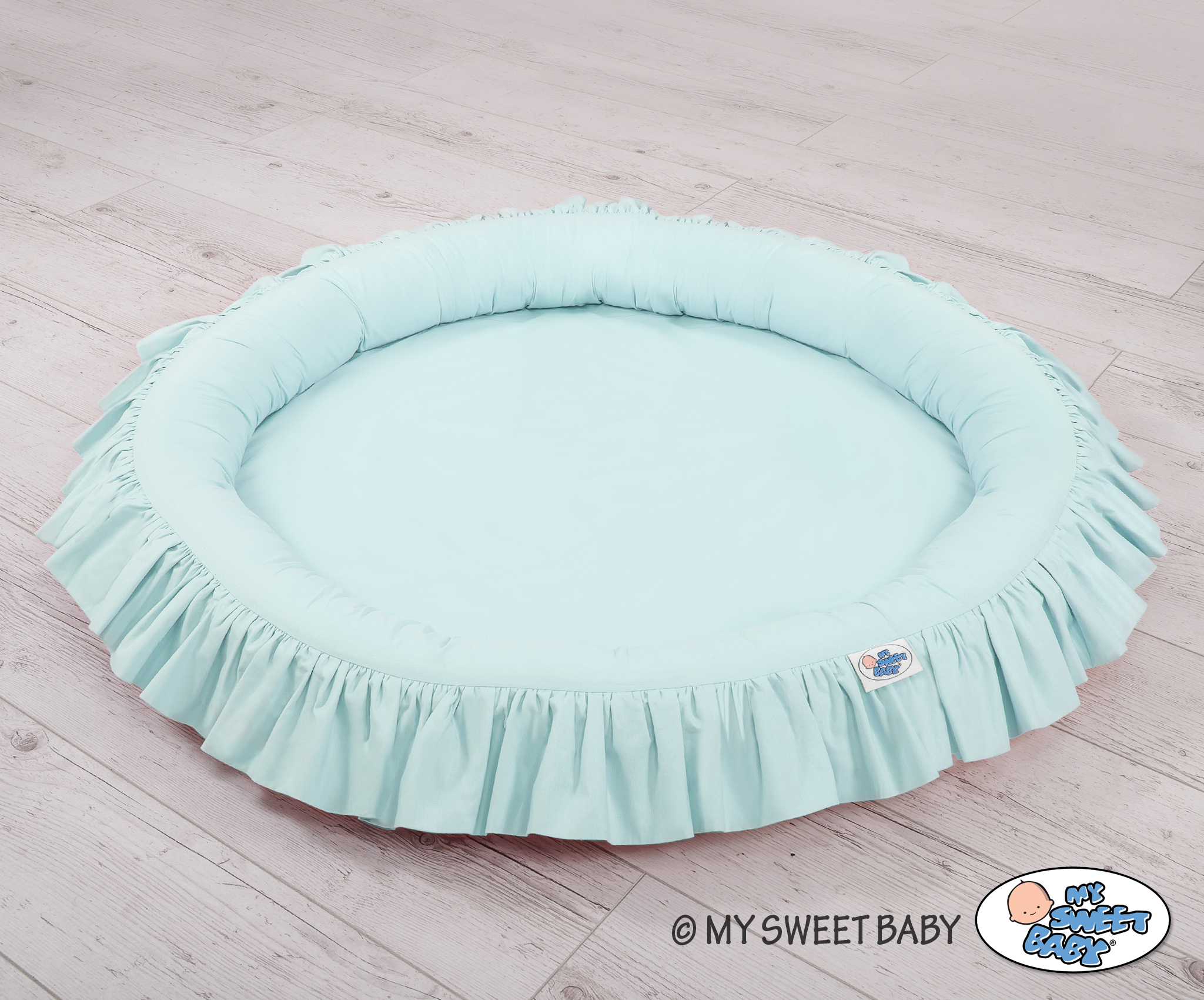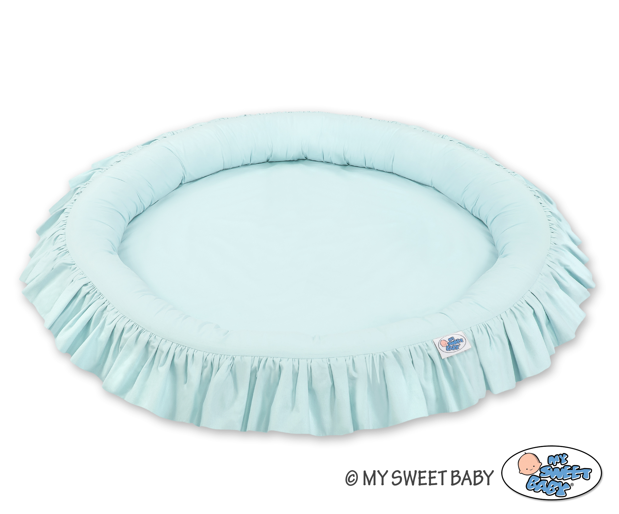 Joli nid à volants. Un nid fonctionnel et pratique pour jouer. Le nid est idéal comme lieu de jeu, ou comme nid au sol pour le grand ciel. Le nid à volant peut être utilisé dès les premiers jours de la vie comme un lieu de repos sûr. Les bords souples assurent la sécurité des bébés. Il est parfait comme terrain de jeu où de nombreux jouets trouvent leur place. Combiné avec le long ciel, le nid à volants devient une belle tente de jeu.