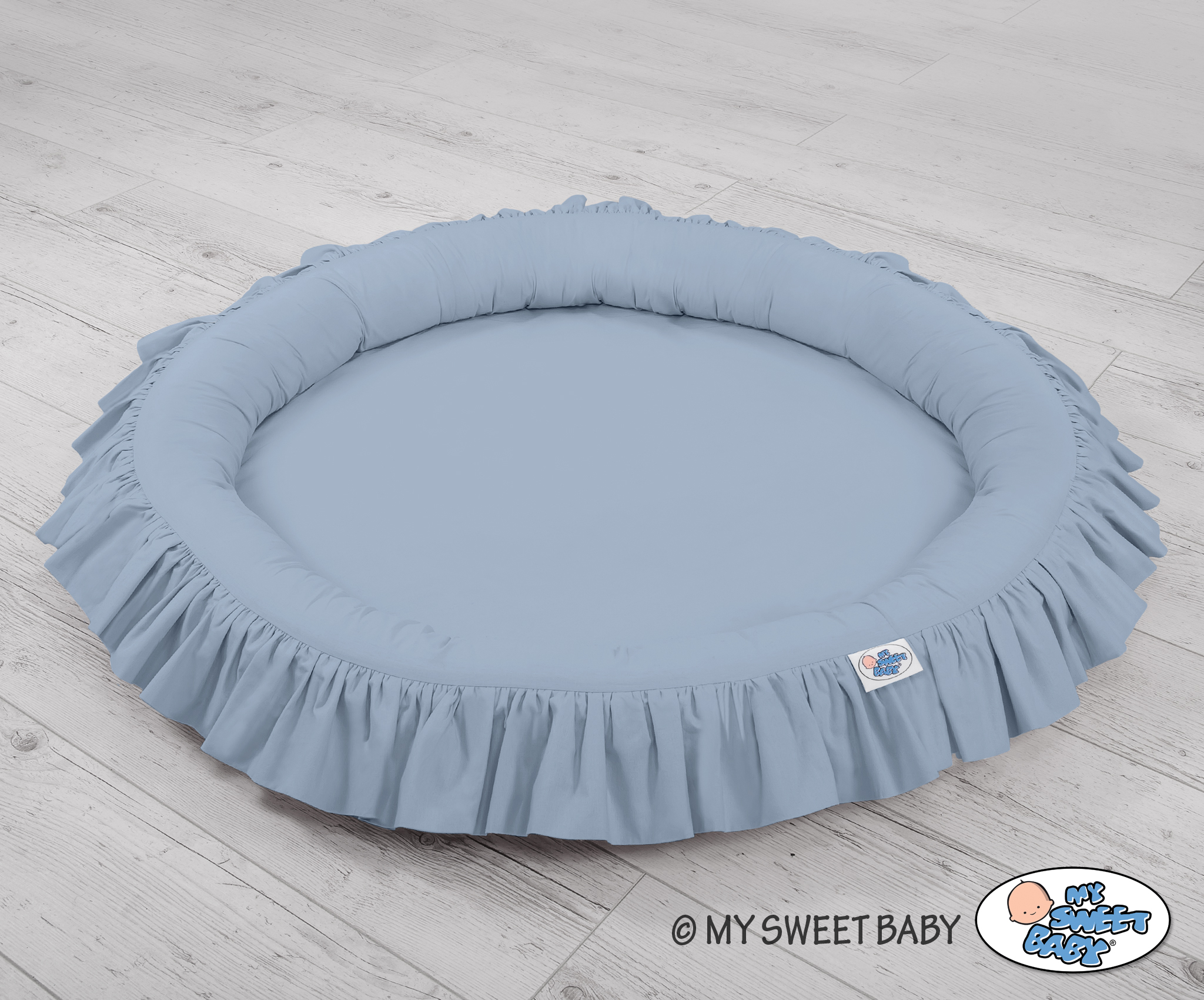 Joli nid à volants. Un nid fonctionnel et pratique pour jouer. Le nid est idéal comme lieu de jeu, ou comme nid au sol pour le grand ciel. Le nid à volant peut être utilisé dès les premiers jours de la vie comme un lieu de repos sûr. Les bords souples assurent la sécurité des bébés. Il est parfait comme terrain de jeu où de nombreux jouets trouvent leur place. Combiné avec le long ciel, le nid à volants devient une belle tente de jeu.