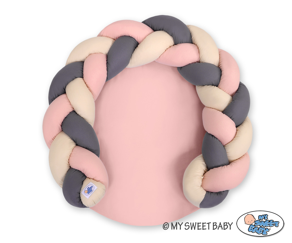 Oreiller multifonctionnel tressé en forme de donut pour bébé. Cet oreiller deux en un peut être utilisé comme oreiller pour que votre bébé puisse s'allonger ou sans les rubans et utiliser la tresse comme tour de lit. L'oreiller bébé donuts est une excellente solution dès les premiers mois de la vie du bébé. Il peut être utilisé dès les premiers jours comme un nid sûr pour bébé et plus tard comme un endroit confortable pour jouer.