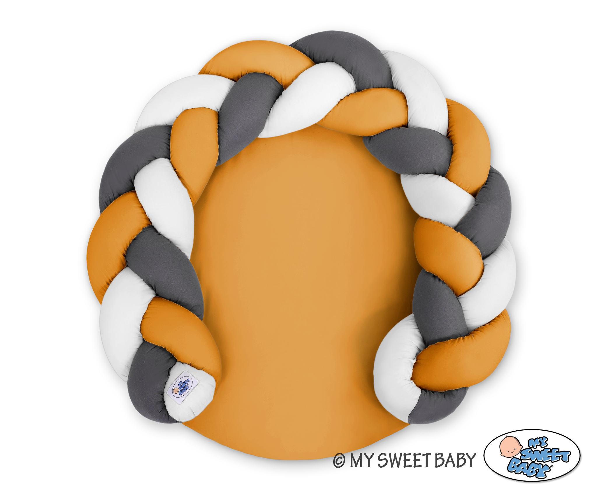 Oreiller Tressé Bébé Donut Blanc Anthracite MielOreiller Tressé Bébé Donut Blanc Anthracite Miel