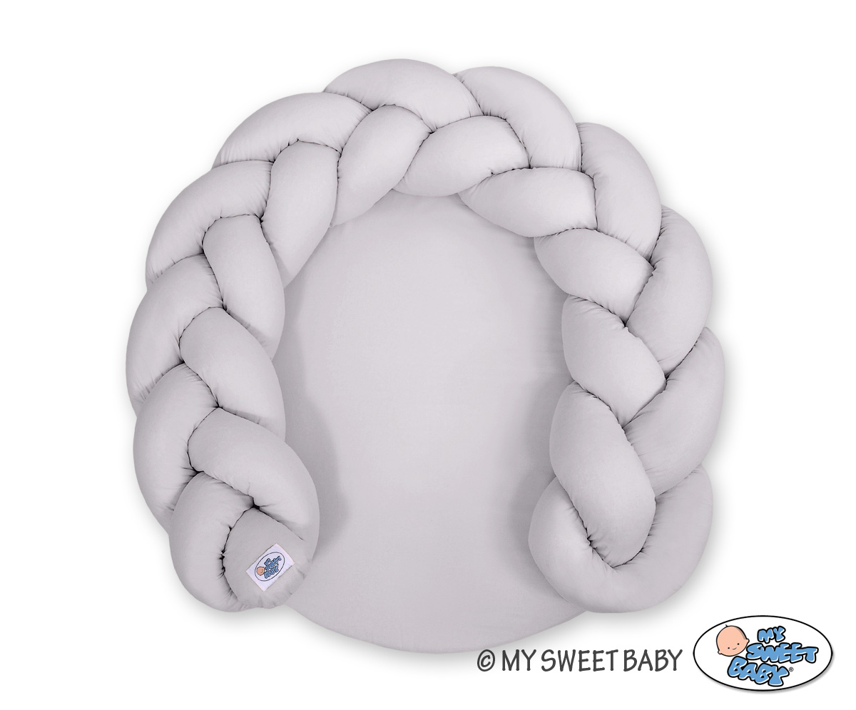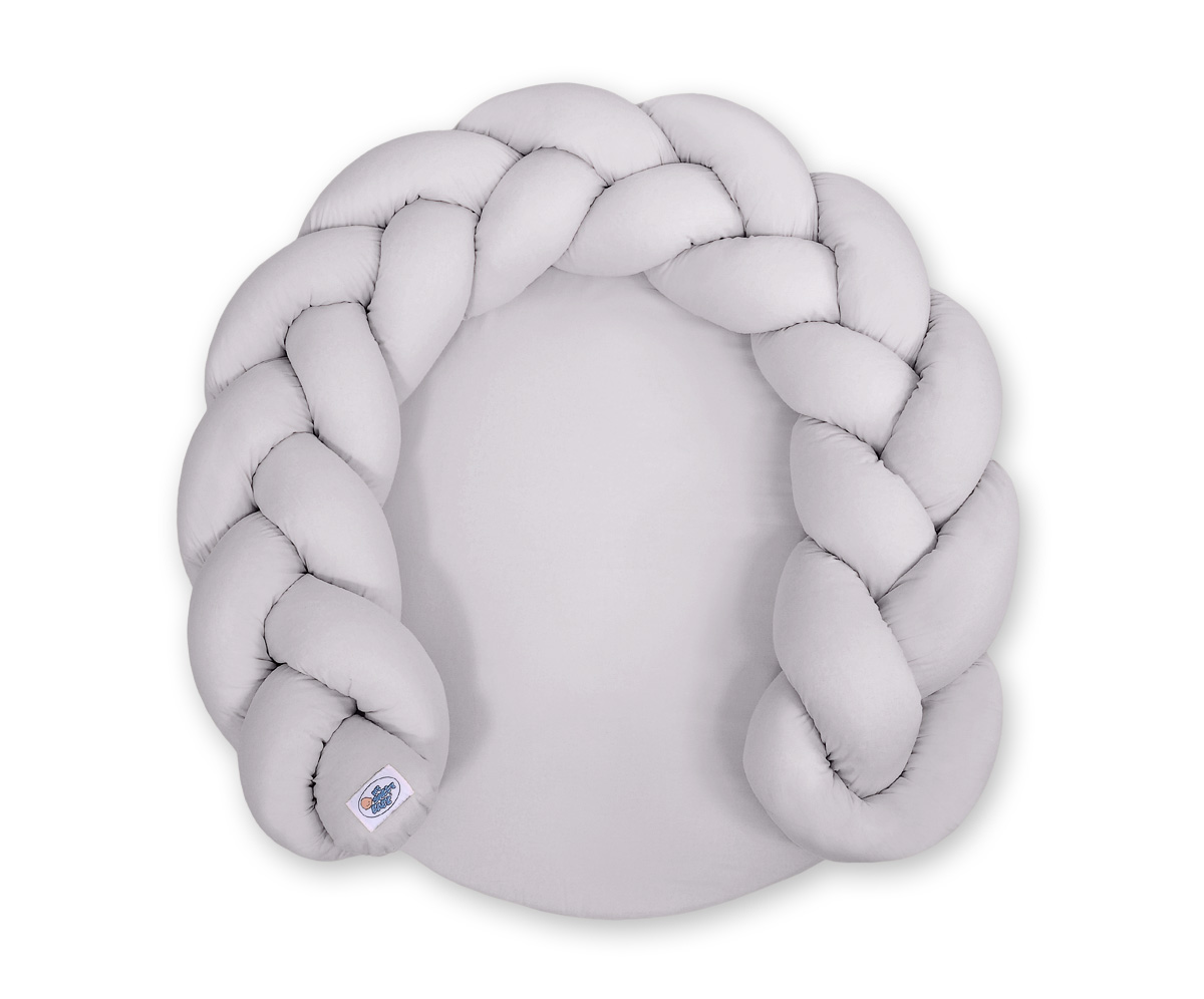 Oreiller multifonctionnel tressé en forme de donut pour bébé. Cet oreiller deux en un peut être utilisé comme oreiller pour que votre bébé puisse s'allonger ou sans les rubans et utiliser la tresse comme tour de lit. L'oreiller bébé donuts est une excellente solution dès les premiers mois de la vie du bébé. Il peut être utilisé dès les premiers jours comme un nid sûr pour bébé et plus tard comme un endroit confortable pour jouer.