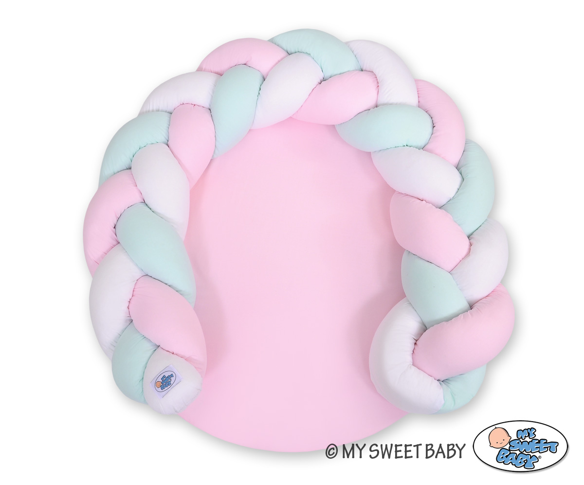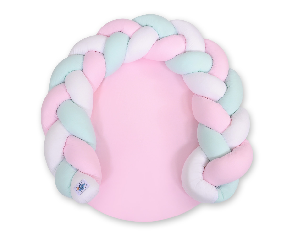 Bébé chambre » Collection tressé Magic Loop » Cocon tressé bébé donut » Oreiller Tressé Bébé Donut Menthe Rose Blanc