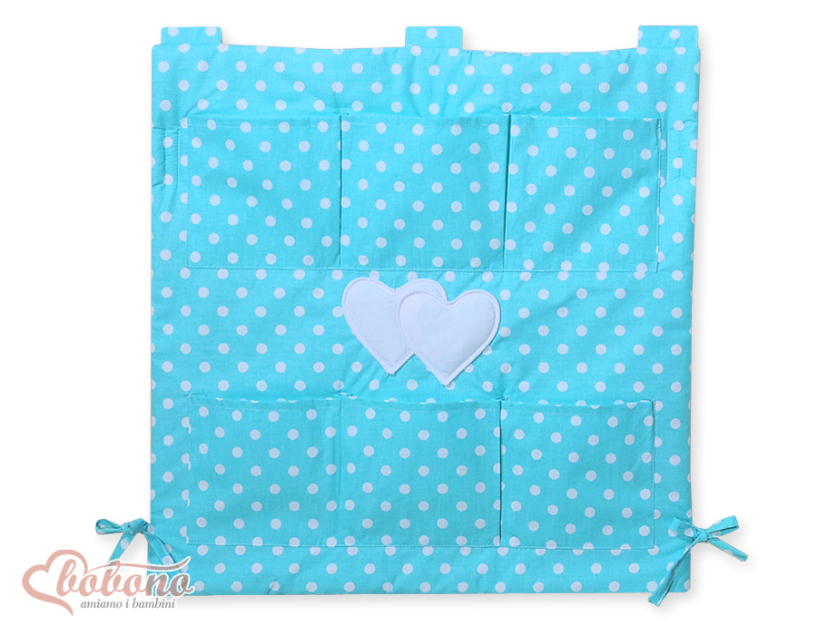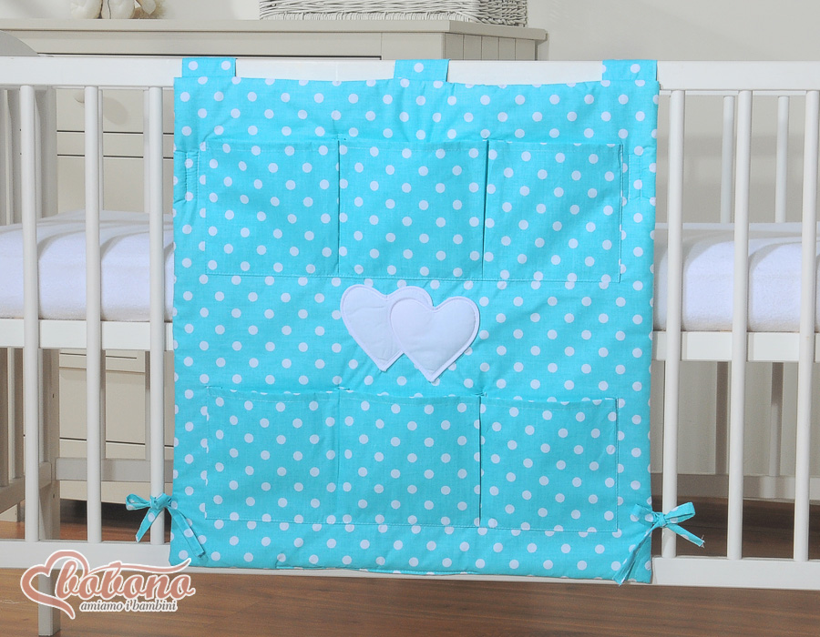 Bébé chambre » Linge de lit bébé » Linge de lit bébé Cœurs » Organiseur pour lit de bébé » Organisateur Vide-poche de Lit Turquoise à Pois Cœurs