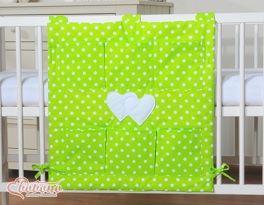 Bébé chambre » Linge de lit bébé » Linge de lit bébé Cœurs » Organiseur pour lit de bébé » Organisateur Vide-poche de Lit Vert à Pois Cœurs