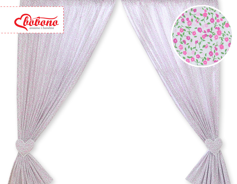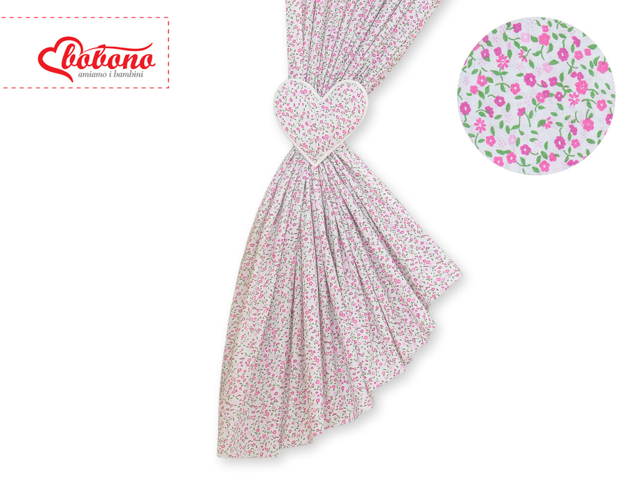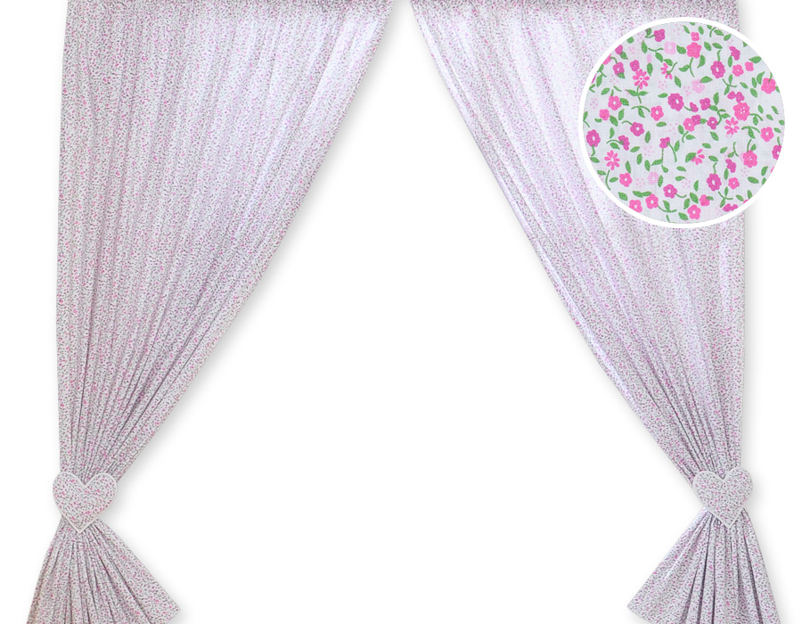 Bébé chambre » Linge de lit bébé » Linge de lit bébé Cœurs » Rideaux pour chambre de bébé » Paire de Rideaux de Chambre de Bébé Rose Fleurs Cœurs