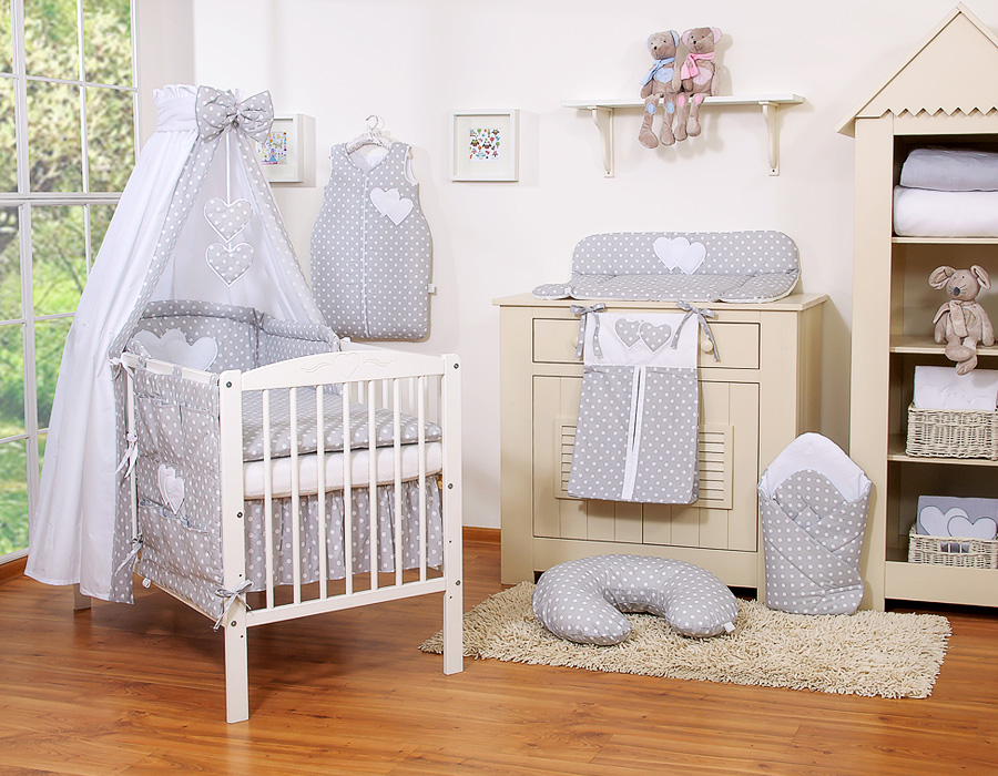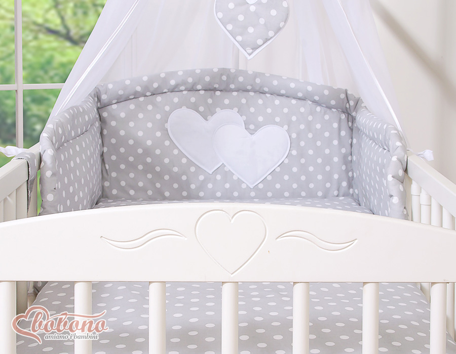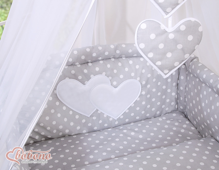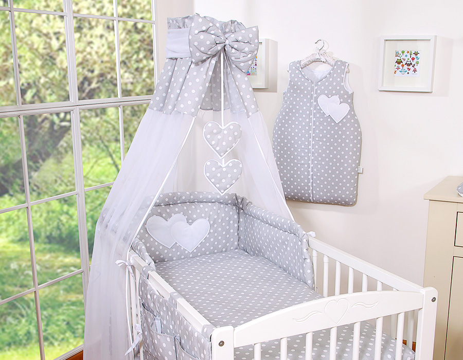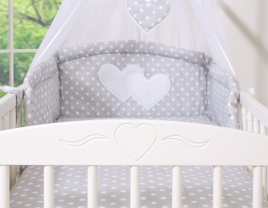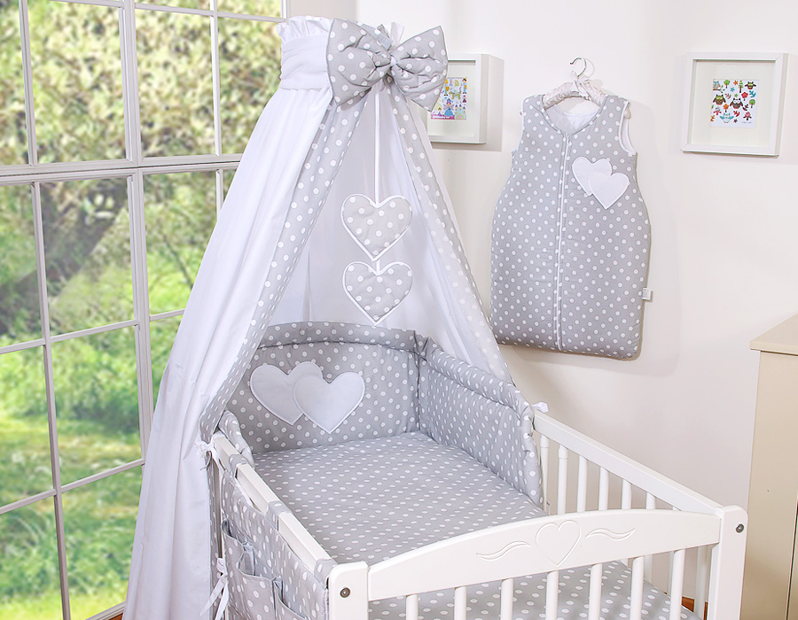 Ensemble de linge de lit pour bébé 11 pcs avec ciel de lit - Collection Cœurs