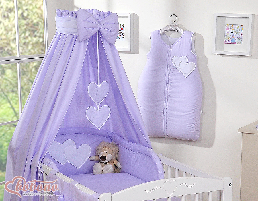 Bébé chambre » Linge de lit bébé » Linge de lit bébé Cœurs » Linge de lit bébé 140cm Cœurs » Ensemble de linge de lit 11 pcs avec ciel de lit » Parure de Linge Lit Bébé 11 pcs Ciel Lila Cœurs