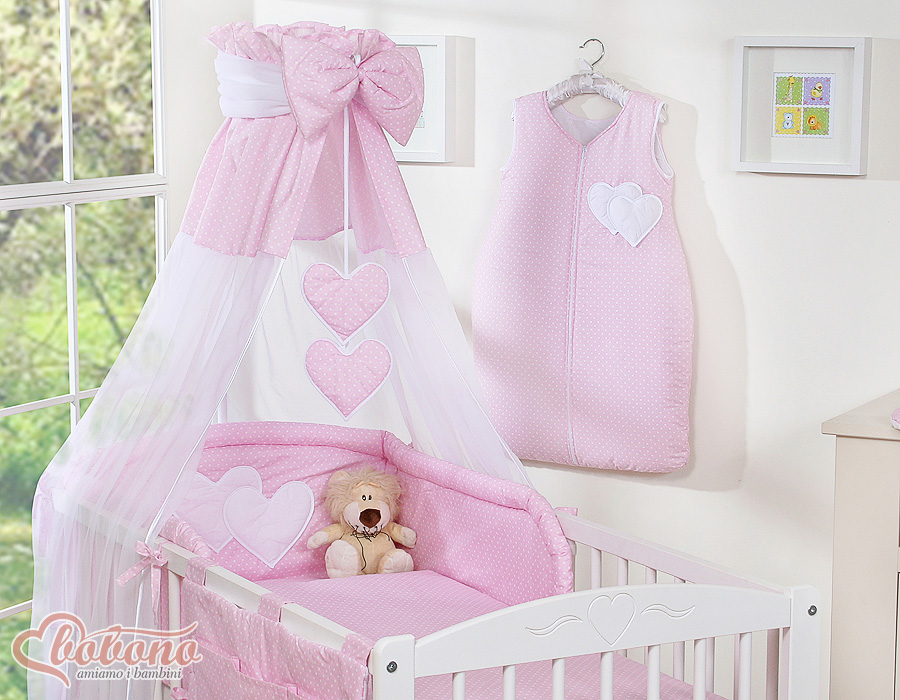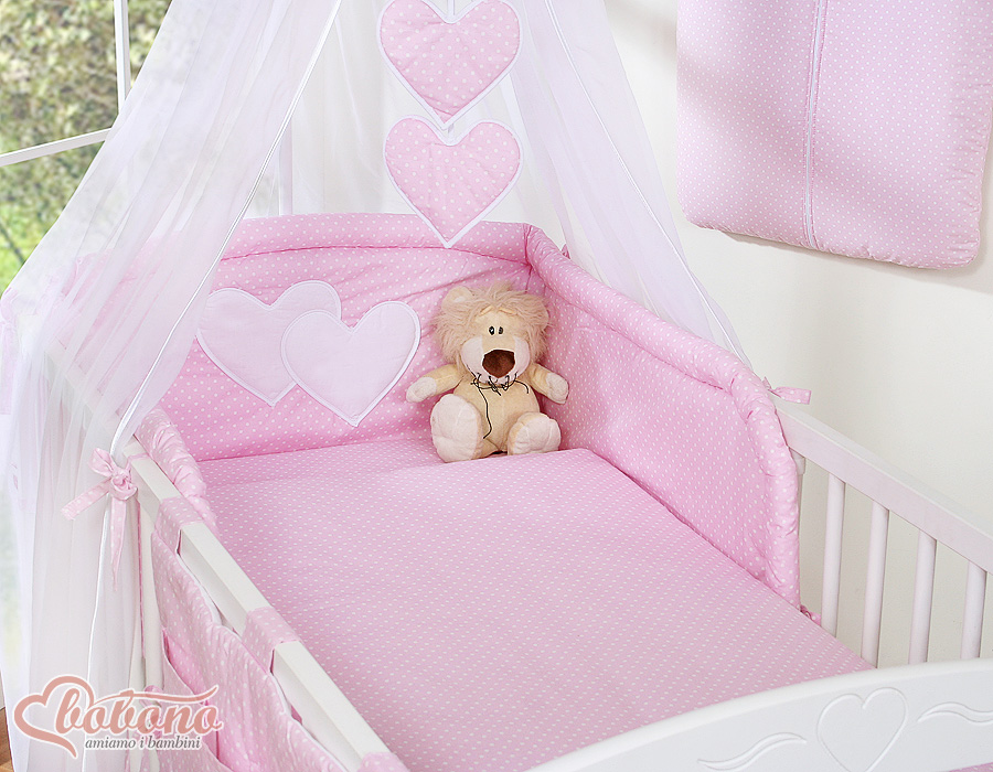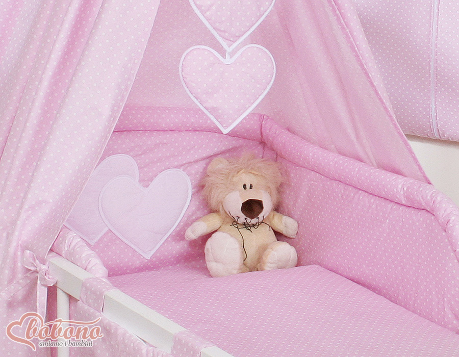 Ensemble de linge de lit pour bébé 11 pcs avec ciel de lit - Collection Cœurs