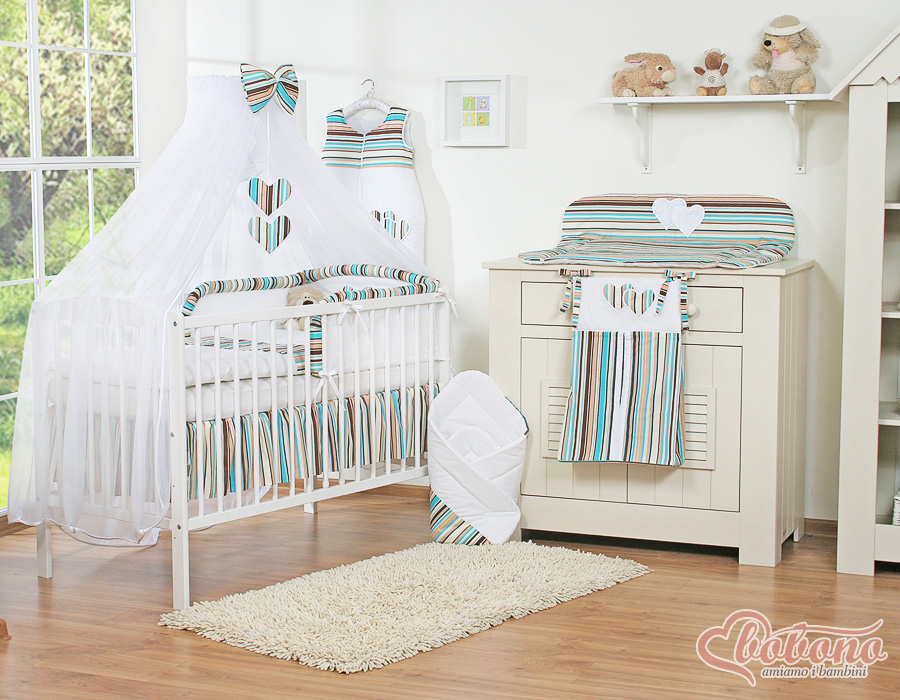 Bébé chambre » Linge de lit bébé » Linge de lit bébé Cœurs » Linge de lit bébé 140cm Cœurs » Parure de linge de lit 11 pcs avec moustiquaire » Parure de Linge Lit Bébé 11 pcs Moustiquaire Brun Rayures Cœurs