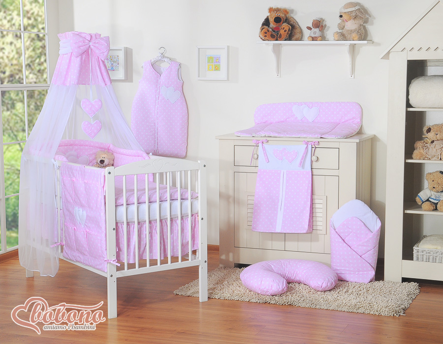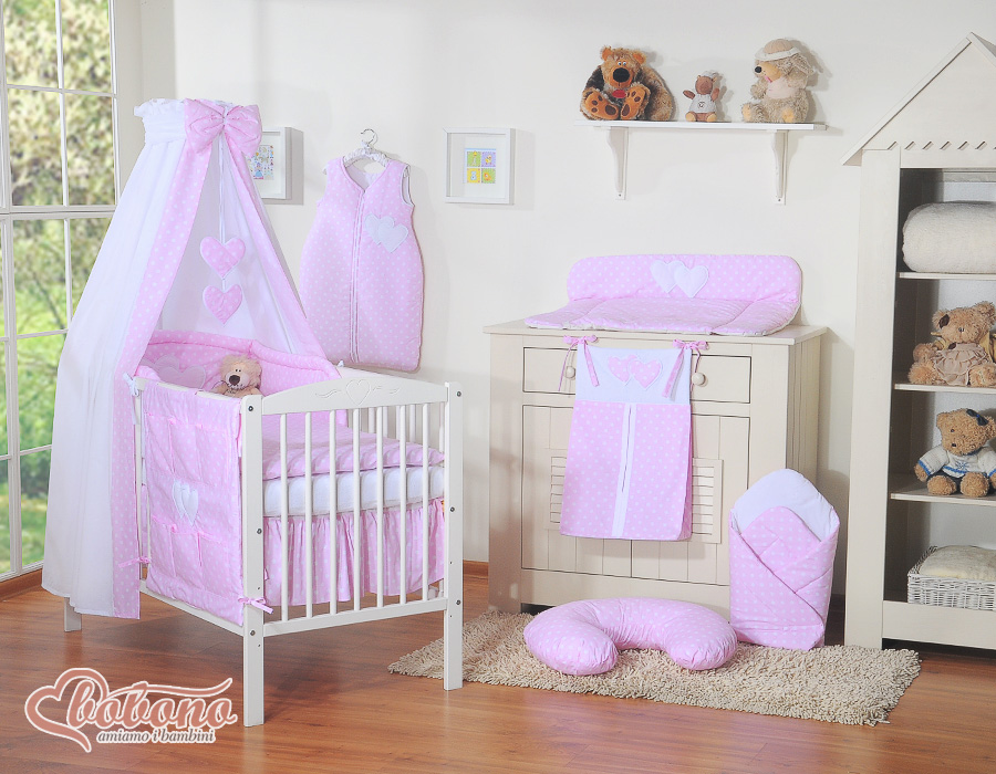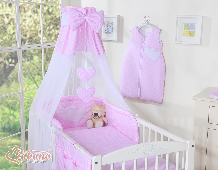 Ensemble de linge de lit pour bébé 5 pcs avec baldaquin - Collection Coeur