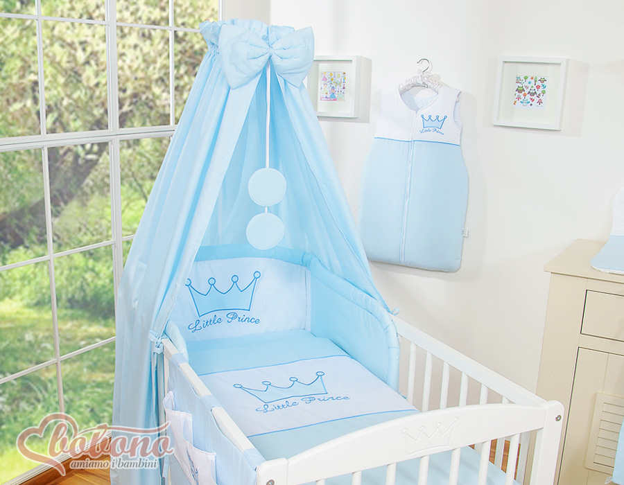 Bébé chambre » Linge de lit bébé » Linge de lit Little Prince / Princess » Linge de lit 120cm » Ensemble de linge de lit 11 pcs avec baldaquin » Parure pour Lit Bébé 11 pcs Ciel Bleu Prince