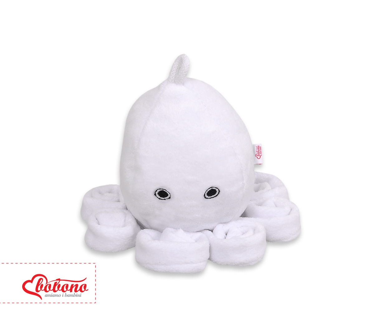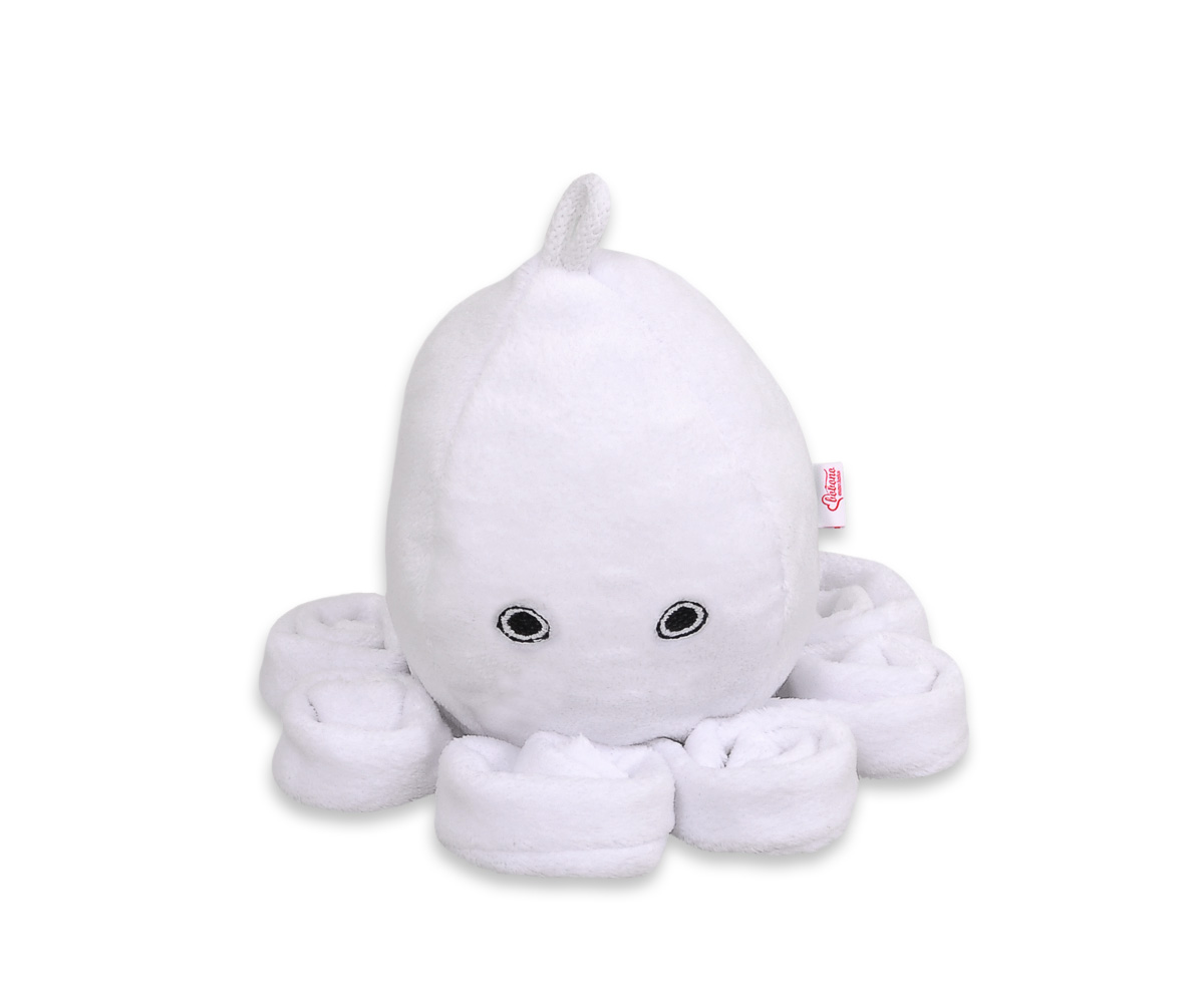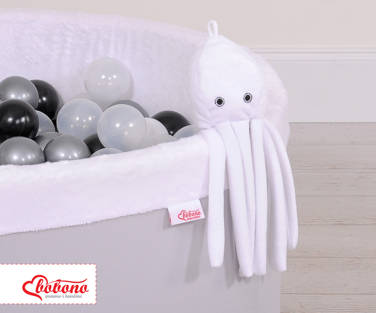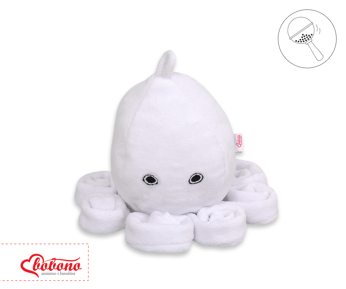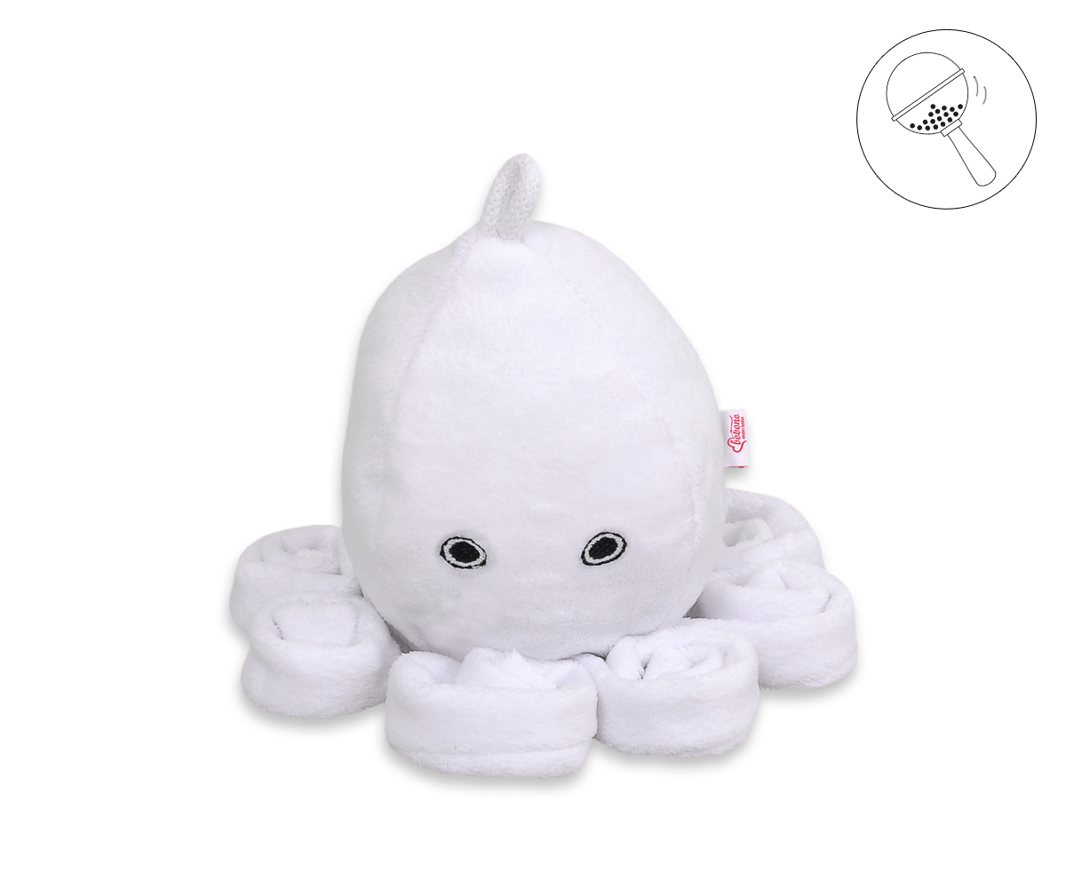 La drôle de pieuvre en peluche est parfaite pour dormir et faire des câlins pour chaque bébé. Les bras de l'ostopus sont confortables à tenir par les petites mains de bébé. La pieuvre est parfaite et sans danger pour les bébés dès les premiers moments de leur vie. Avec le doux bruit du hochet, elle attire l'attention de l'enfant sur elle-même. Elle est faite d'une toison de minky douce au toucher, moelleuse et délicate. Le rembourrage à l'intérieur de l'oreiller est constitué de billes de silicone testées par Eco Fillball - "peluche artificielle" pour oreillers - qui assurent une bonne assise du bébé et une bonne circulation de l'air.