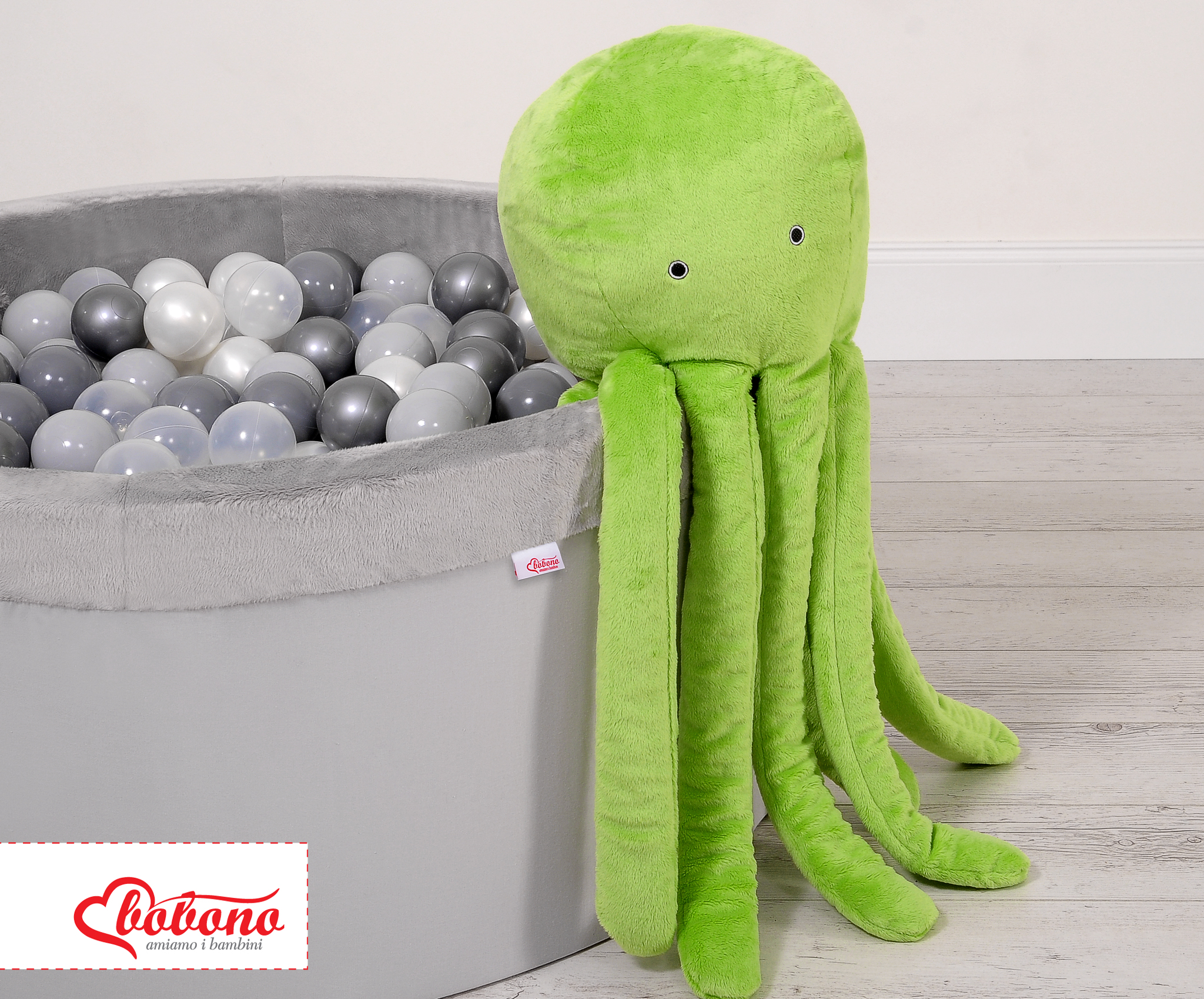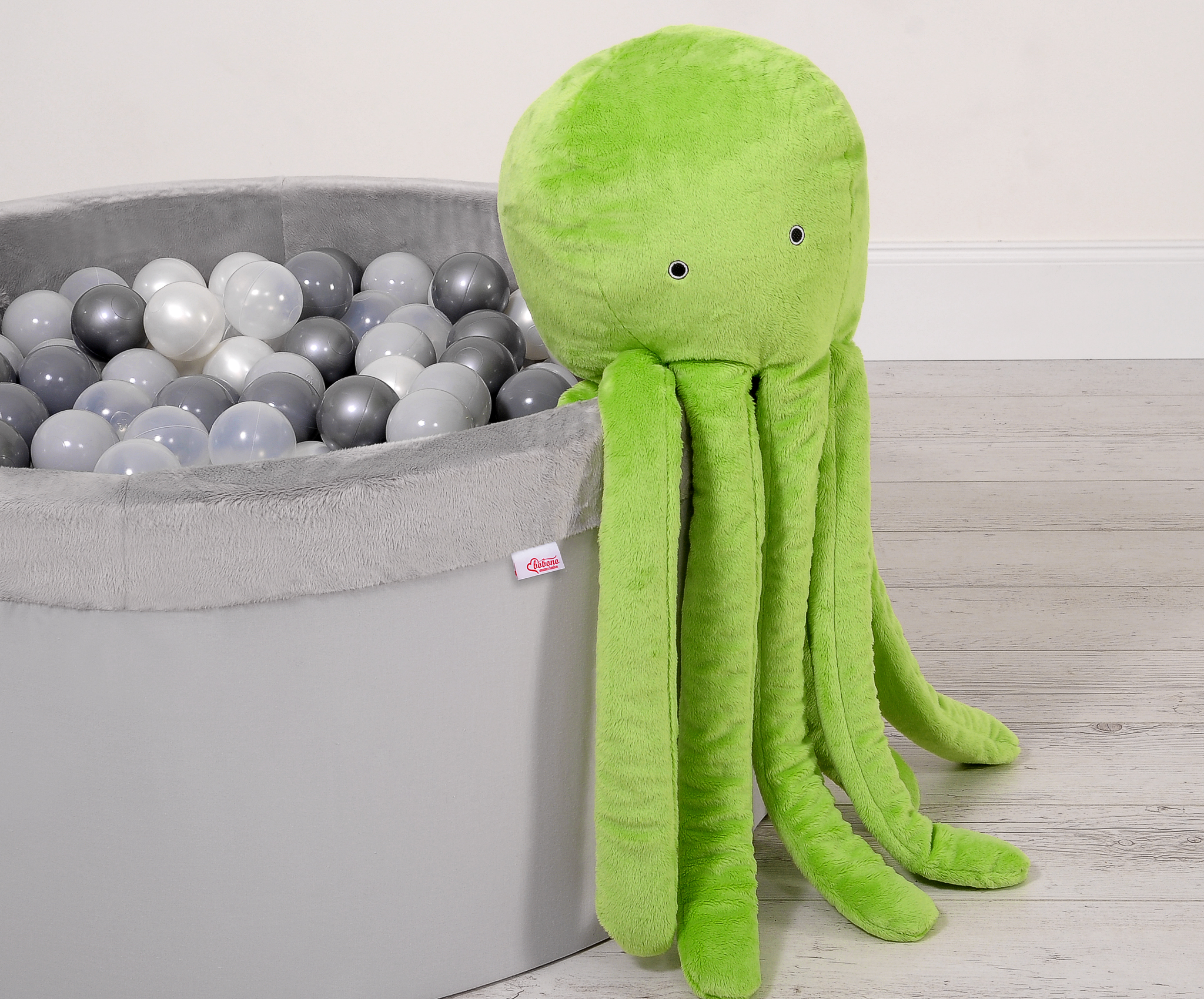 La drôle de pieuvre en peluche est parfaite pour dormir et faire des câlins pour chaque bébé. Les bras de l'ostopus sont confortables à tenir par les petites mains de bébé. La pieuvre est parfaite et sans danger pour les bébés dès les premiers moments de leur vie. Avec le doux bruit du hochet, elle attire l'attention de l'enfant sur elle-même. Elle est faite d'une toison de minky douce au toucher, moelleuse et délicate. Le rembourrage à l'intérieur de l'oreiller est constitué de billes de silicone testées par Eco Fillball - "peluche artificielle" pour oreillers - qui assurent une bonne assise du bébé et une bonne circulation de l'air.
