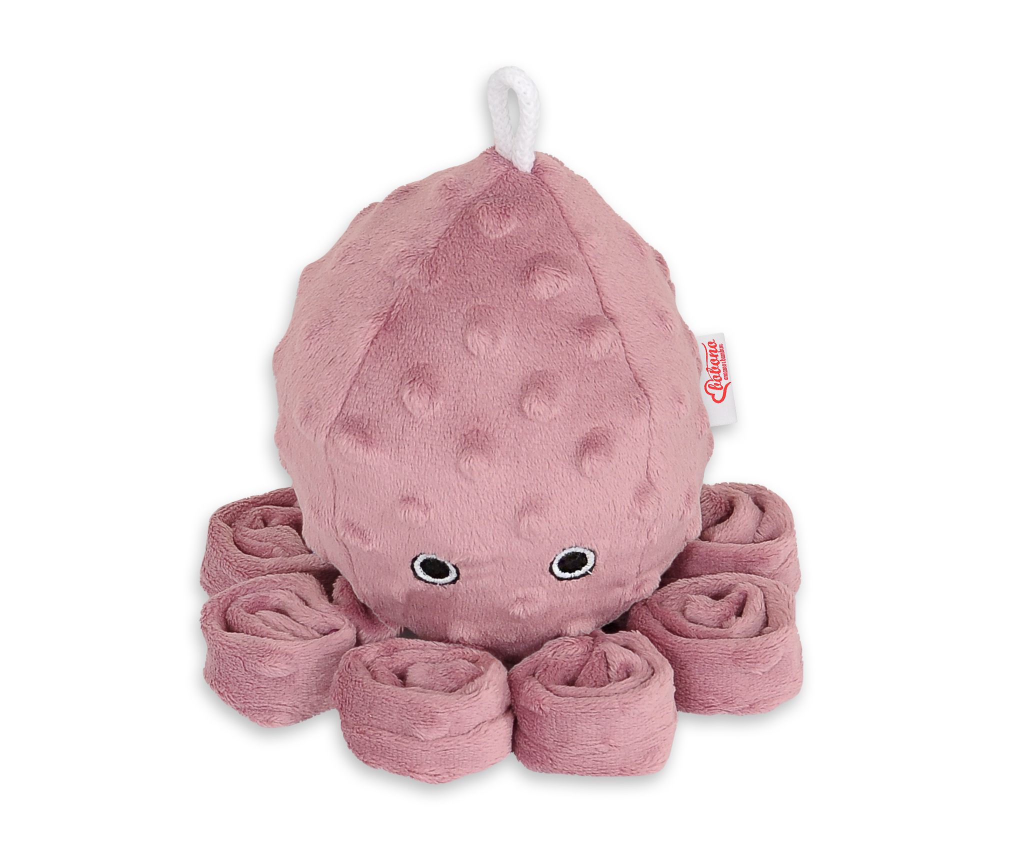 La drôle de pieuvre en peluche est parfaite pour dormir et faire des câlins pour chaque bébé. Les bras de l'ostopus sont confortables à tenir par les petites mains de bébé. La pieuvre est parfaite et sans danger pour les bébés dès les premiers moments de leur vie. Avec le doux bruit du hochet, elle attire l'attention de l'enfant sur elle-même. Elle est faite d'une toison de minky douce au toucher, moelleuse et délicate. Le rembourrage à l'intérieur de l'oreiller est constitué de billes de silicone testées par Eco Fillball - "peluche artificielle" pour oreillers - qui assurent une bonne assise du bébé et une bonne circulation de l'air.