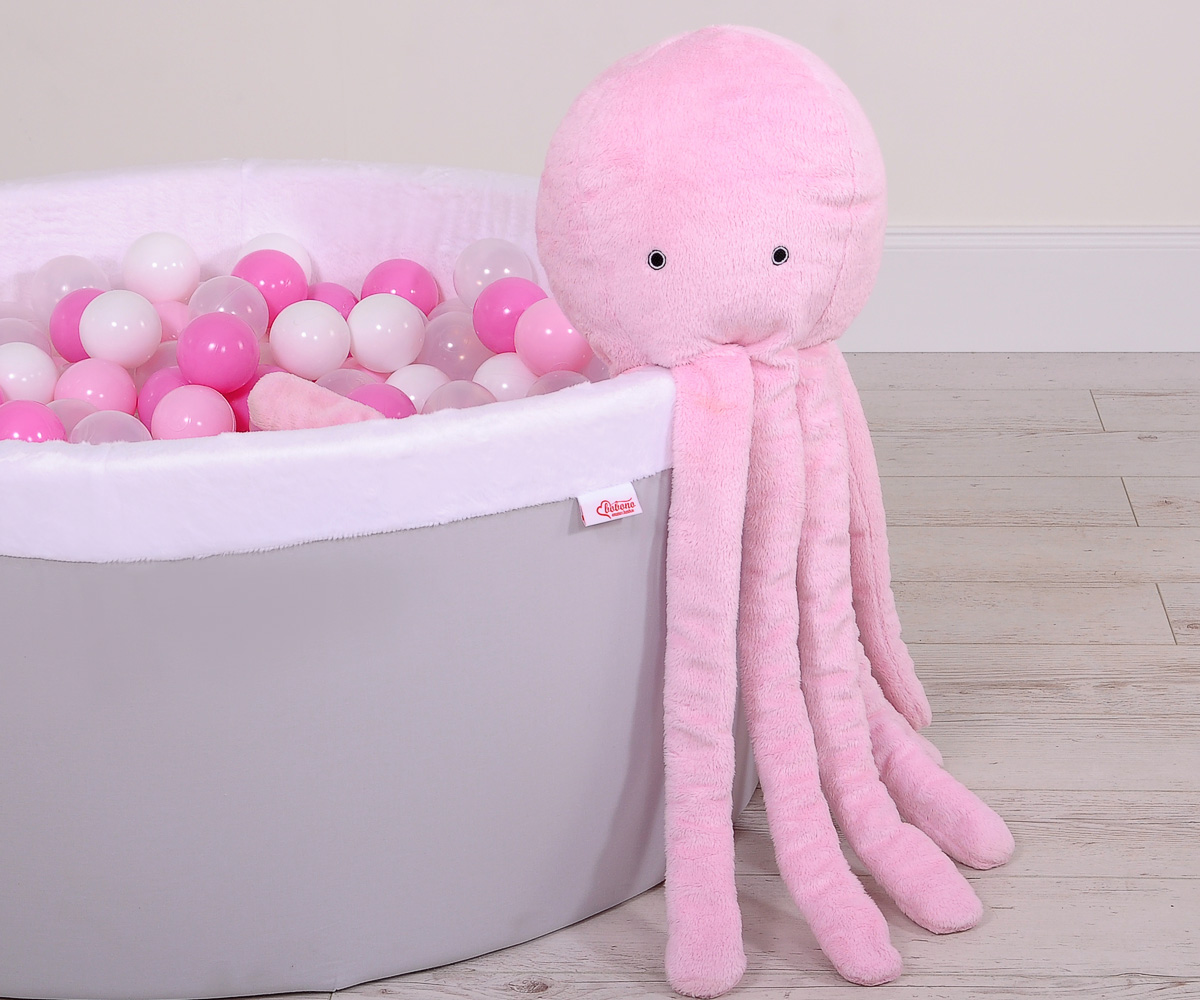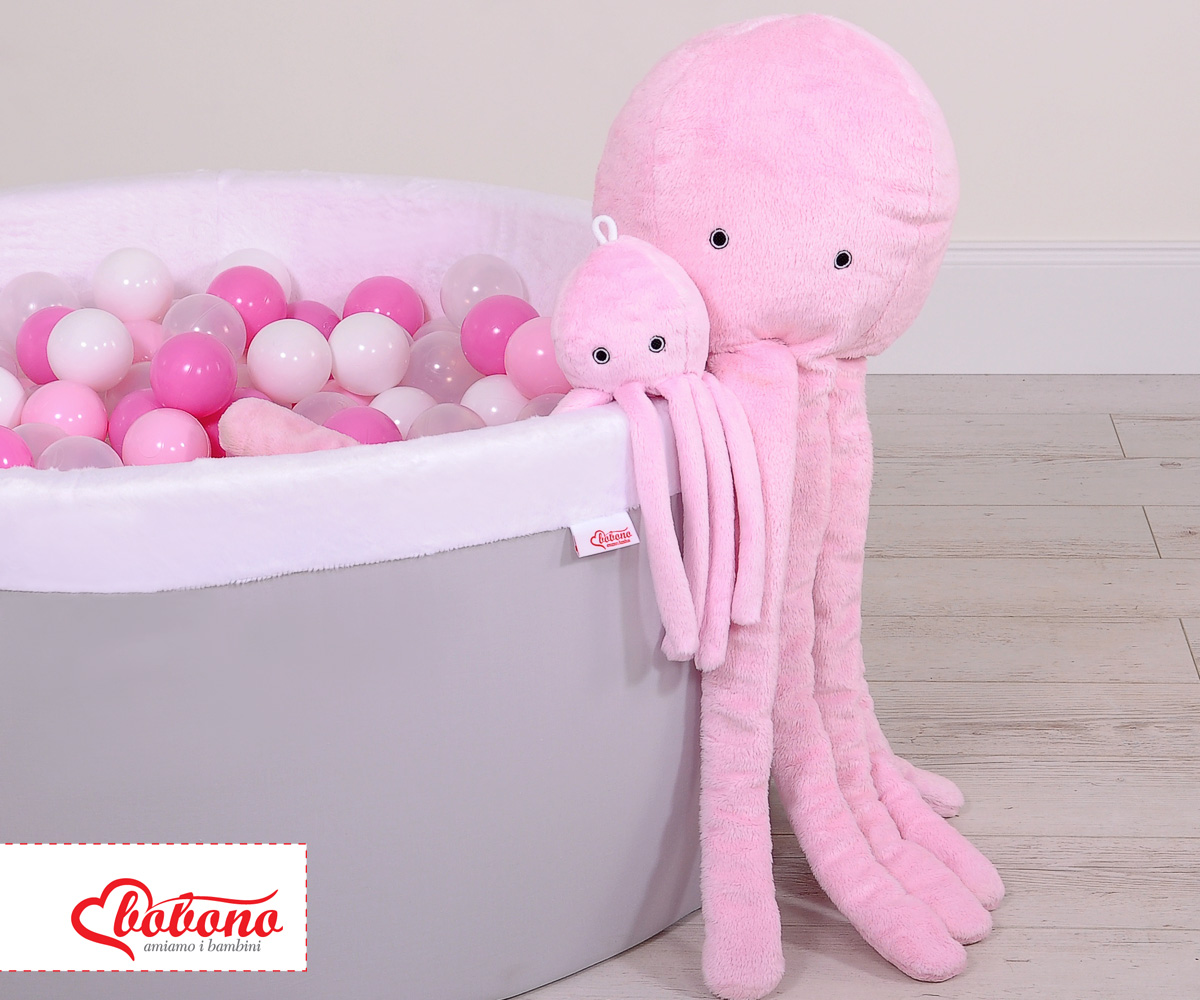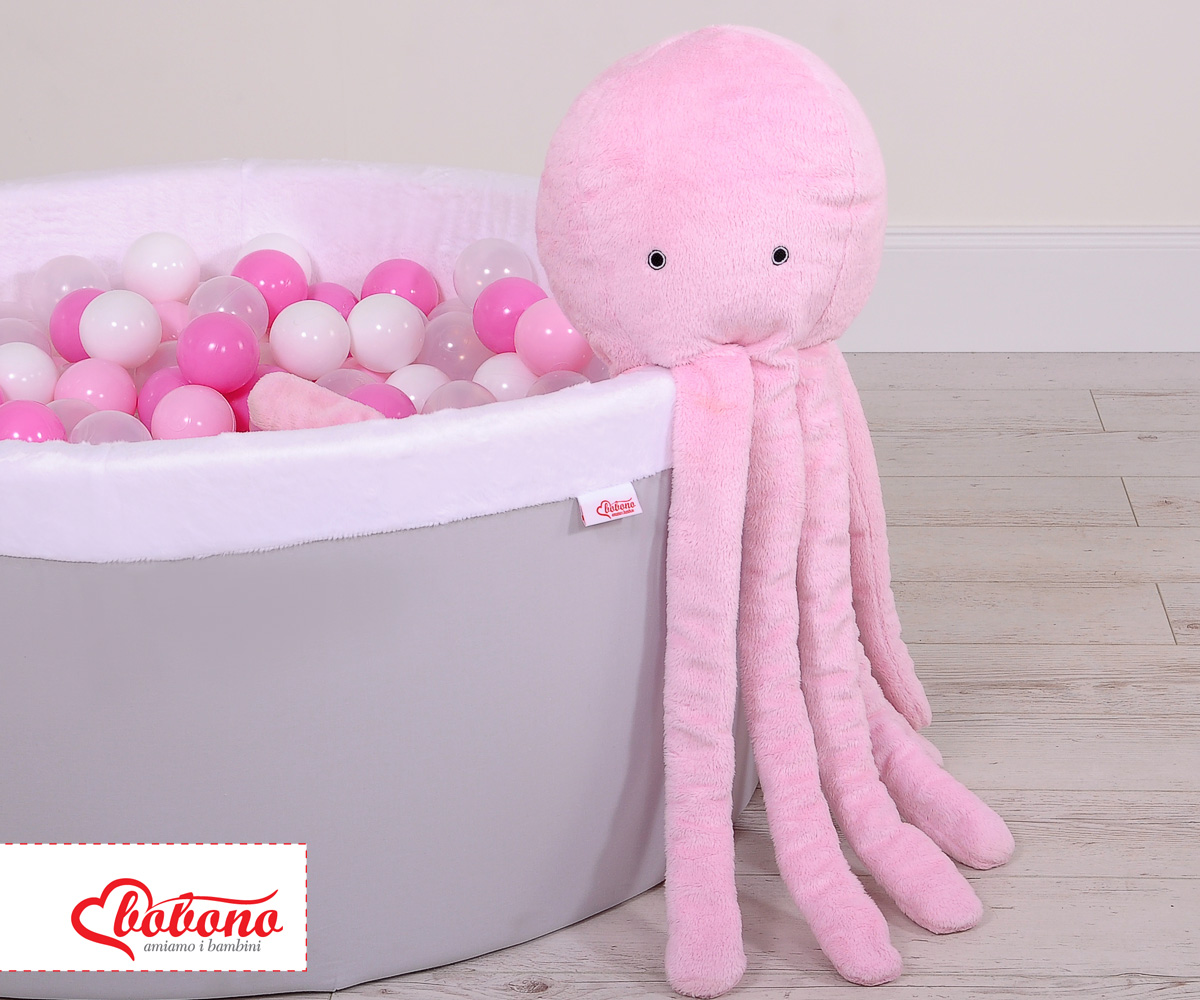 La drôle de pieuvre en peluche est parfaite pour dormir et faire des câlins pour chaque bébé. Les bras de l'ostopus sont confortables à tenir par les petites mains de bébé. La pieuvre est parfaite et sans danger pour les bébés dès les premiers moments de leur vie. Avec le doux bruit du hochet, elle attire l'attention de l'enfant sur elle-même. Elle est faite d'une toison de minky douce au toucher, moelleuse et délicate. Le rembourrage à l'intérieur de l'oreiller est constitué de billes de silicone testées par Eco Fillball - "peluche artificielle" pour oreillers - qui assurent une bonne assise du bébé et une bonne circulation de l'air.