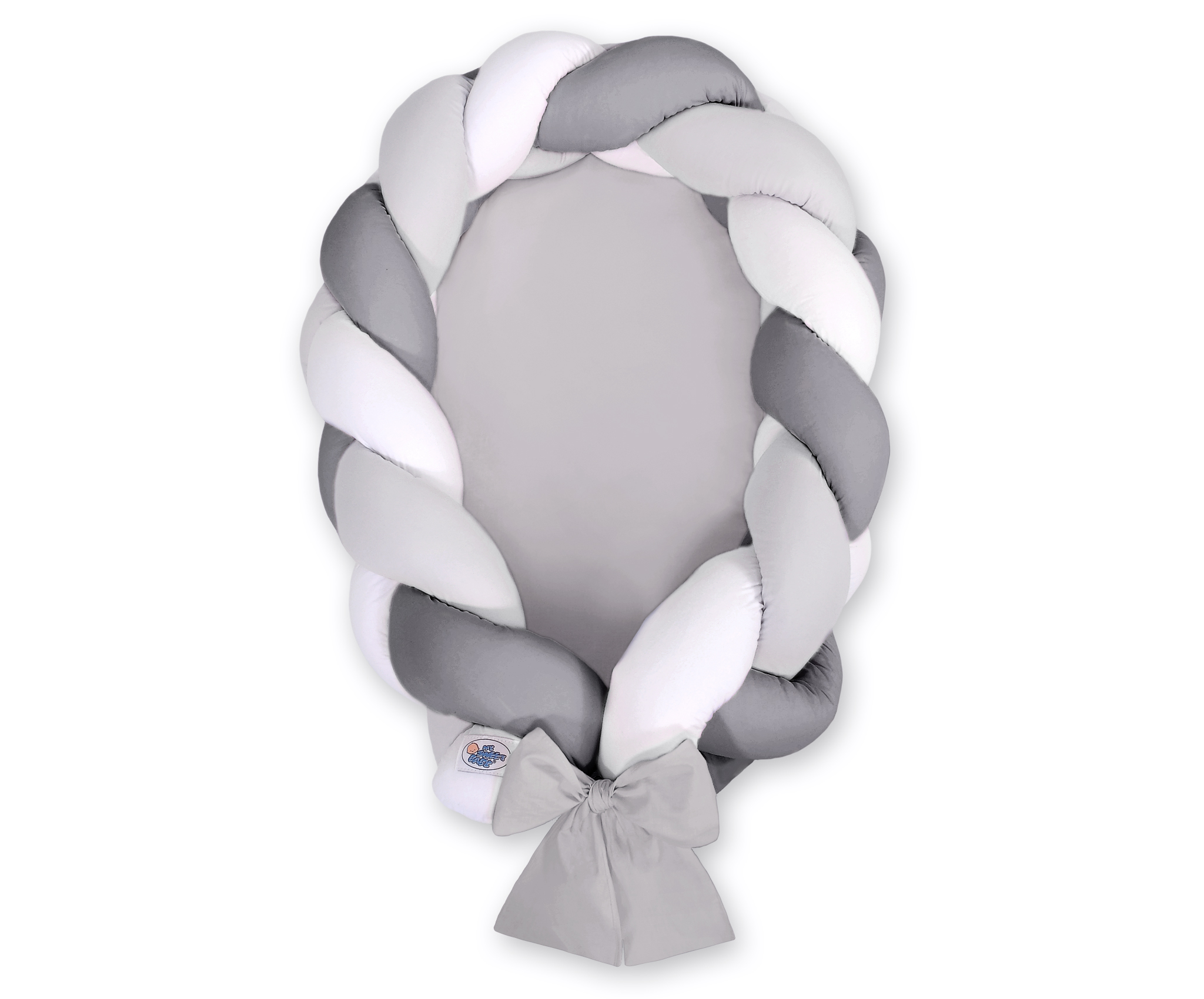 Bébé chambre » Collection tressé Magic Loop » Nid d'ange tressé - Cocon » Réducteur de Lit Bébé Tressé Blanc Gris Anthracite