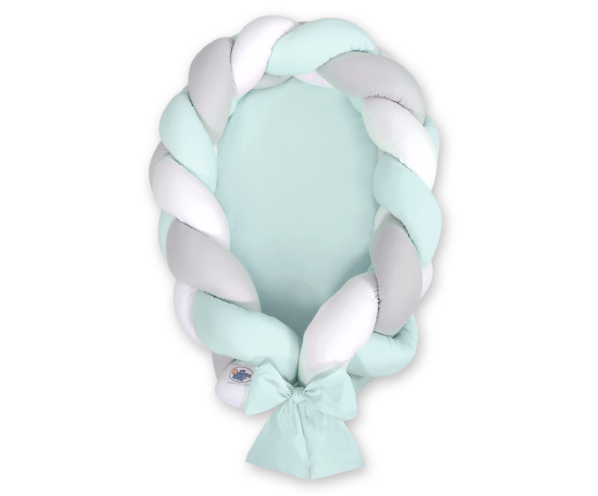 Bébé chambre » Collection tressé Magic Loop » Nid d'ange tressé - Cocon » Réducteur de Lit Bébé Tressé Menthe Blanc Gris