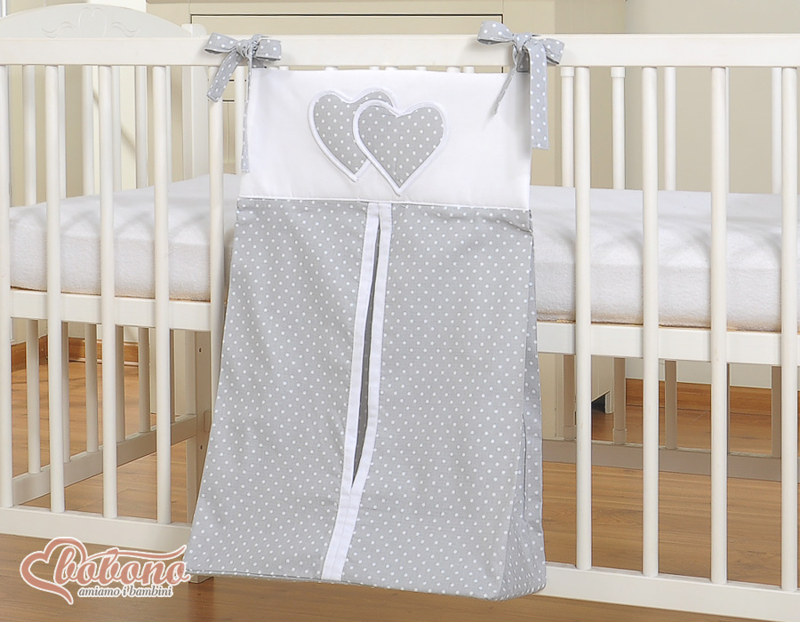 Bébé chambre » Linge de lit bébé » Linge de lit bébé Cœurs » Sac à couches » Sac à Couches Gris à Pois Cœurs