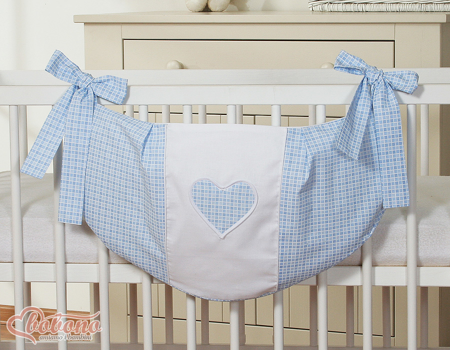 Bébé chambre » Linge de lit bébé » Linge de lit bébé Cœurs » Sac de jouets » Sac à Jeux et Doudous pour Lit Bébé Bleu à Carreaux Cœurs
