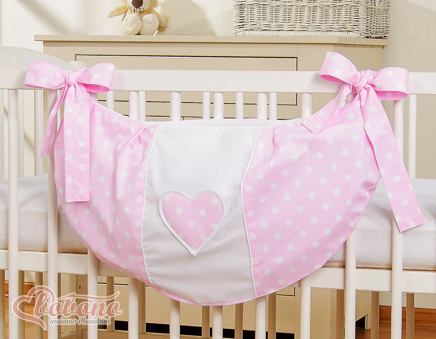 Sac à Jeux et Doudous pour Lit Bébé Rose à Pois CœursSac à Jeux et Doudous pour Lit Bébé Rose à Pois Cœurs