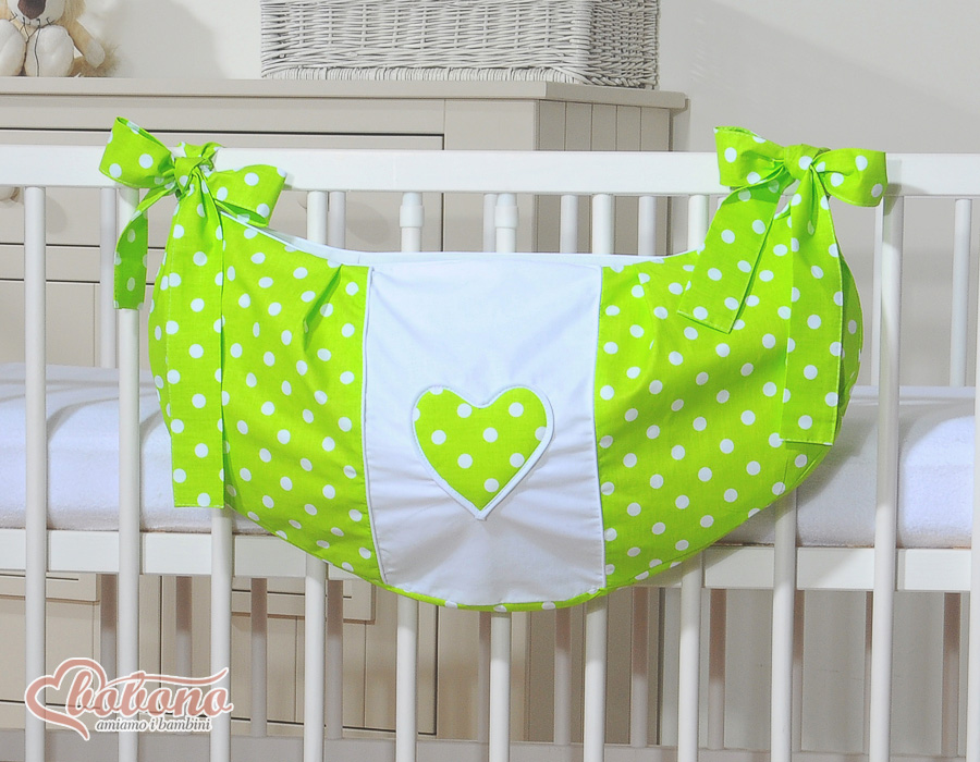 Sac de Jouet pour Berceau Vert à Pois Cœurs