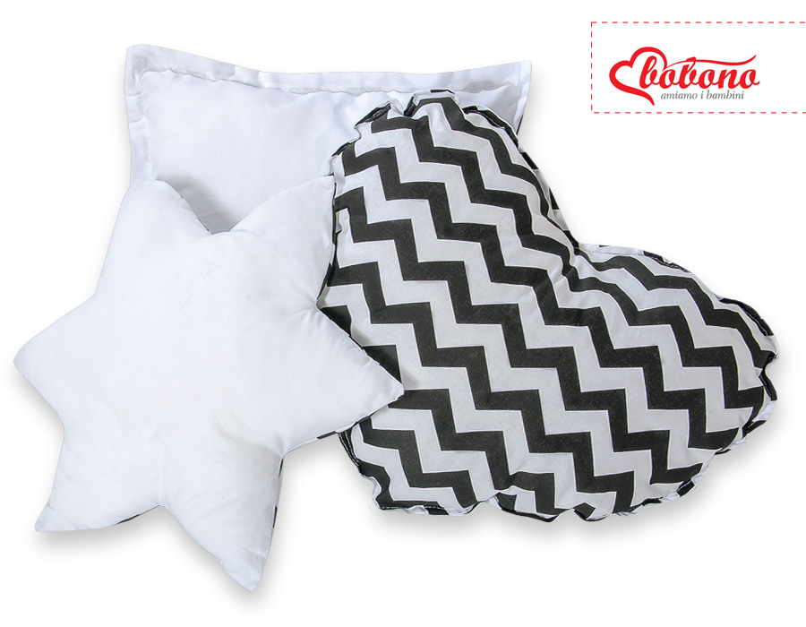 Des oreillers doux et moelleux, assortis à la couleur de la tenture. Chaque oreiller a une forme originale et décorative différente. Les coussins sont bicolores - chaque côté est fait d'un matériau différent. Ils sont également parfaits comme décoration colorée pour la chambre des enfants.