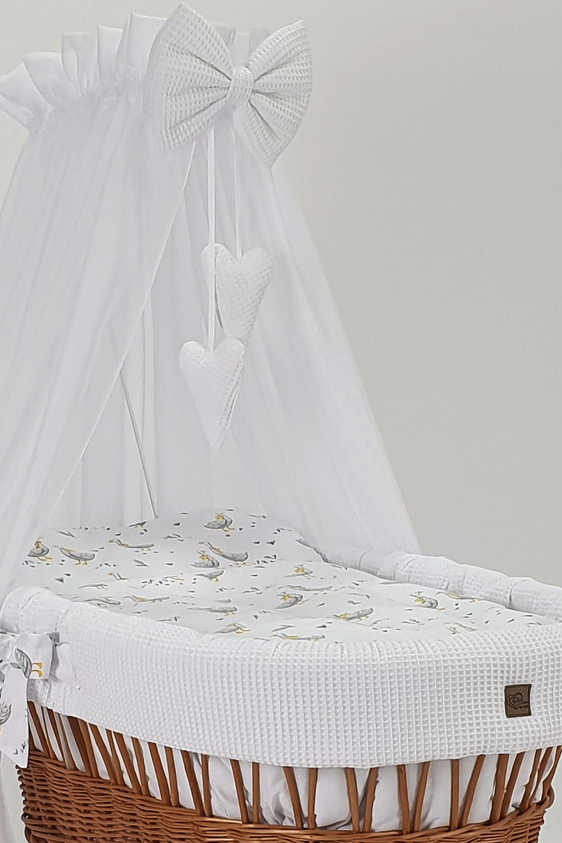 Habillage complet XXL pour tres grand berceau en osier - coton gaufré - blanc