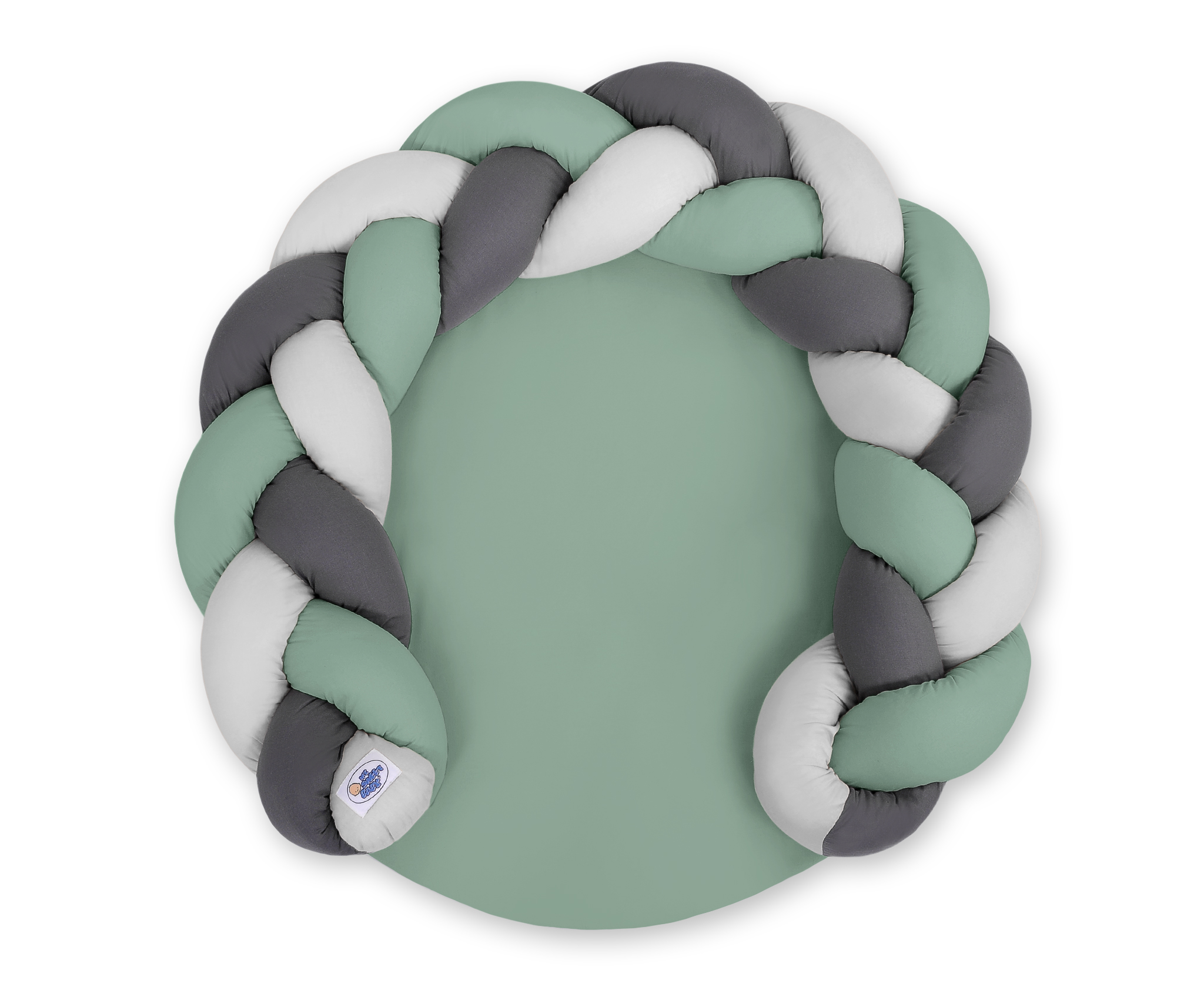 Bébé chambre » Collection tressé Magic Loop » Cocon tressé bébé donut » Tapis de Jeu avec Tour de Lit Tressé 2 en 1 Gris Blanc Vert Anthracite