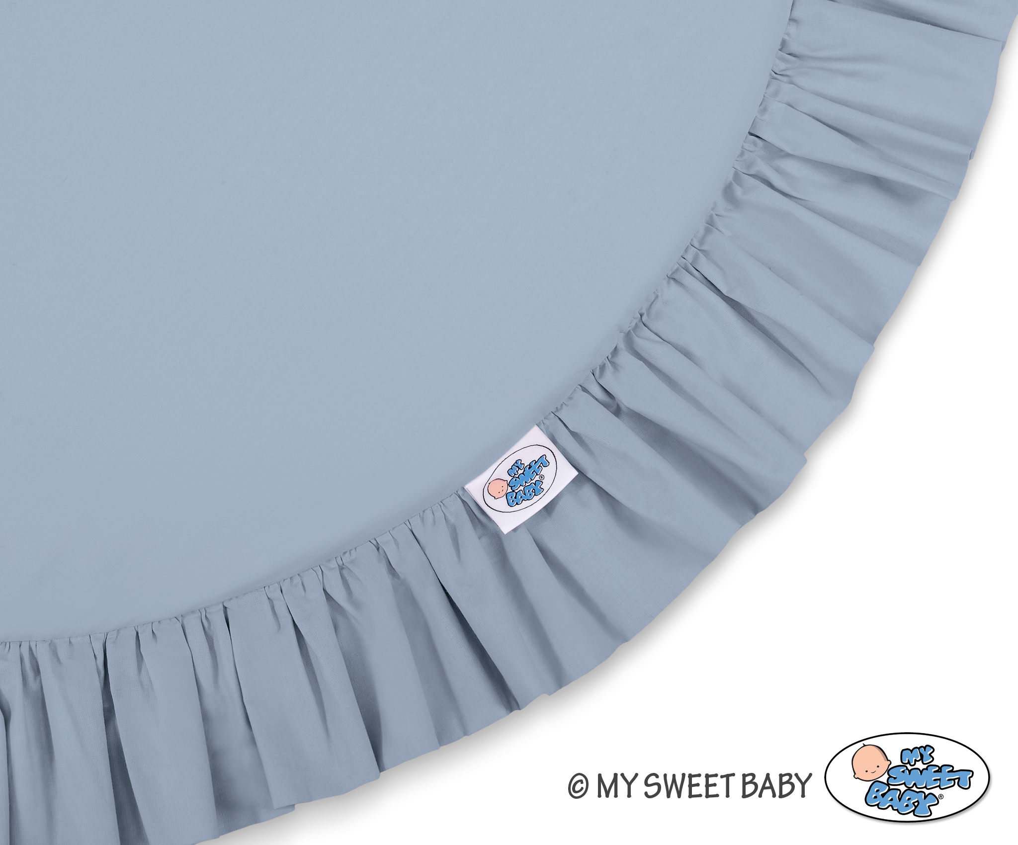 Un tapis de jeu de sol avec des volants. Il peut être utilisé comme tapis, tapis de jeu ou comme tapis de sol pour le long baldaquin. Dès les premiers jours de la vie, il peut être utilisé comme lieu de repos ou comme tapis de jeu pour le temps du passage sur le ventre. Il a un rembourrage souple qui l'isole parfaitement du sol dur et froid. La couverture est fabriquée en coton 100% certifié OKOTEX. Le dessous du tapis de jeu est fait d'un matériau moderne, antiallergique et attesté. Le fond peut être retiré et la couverture peut être lavée.