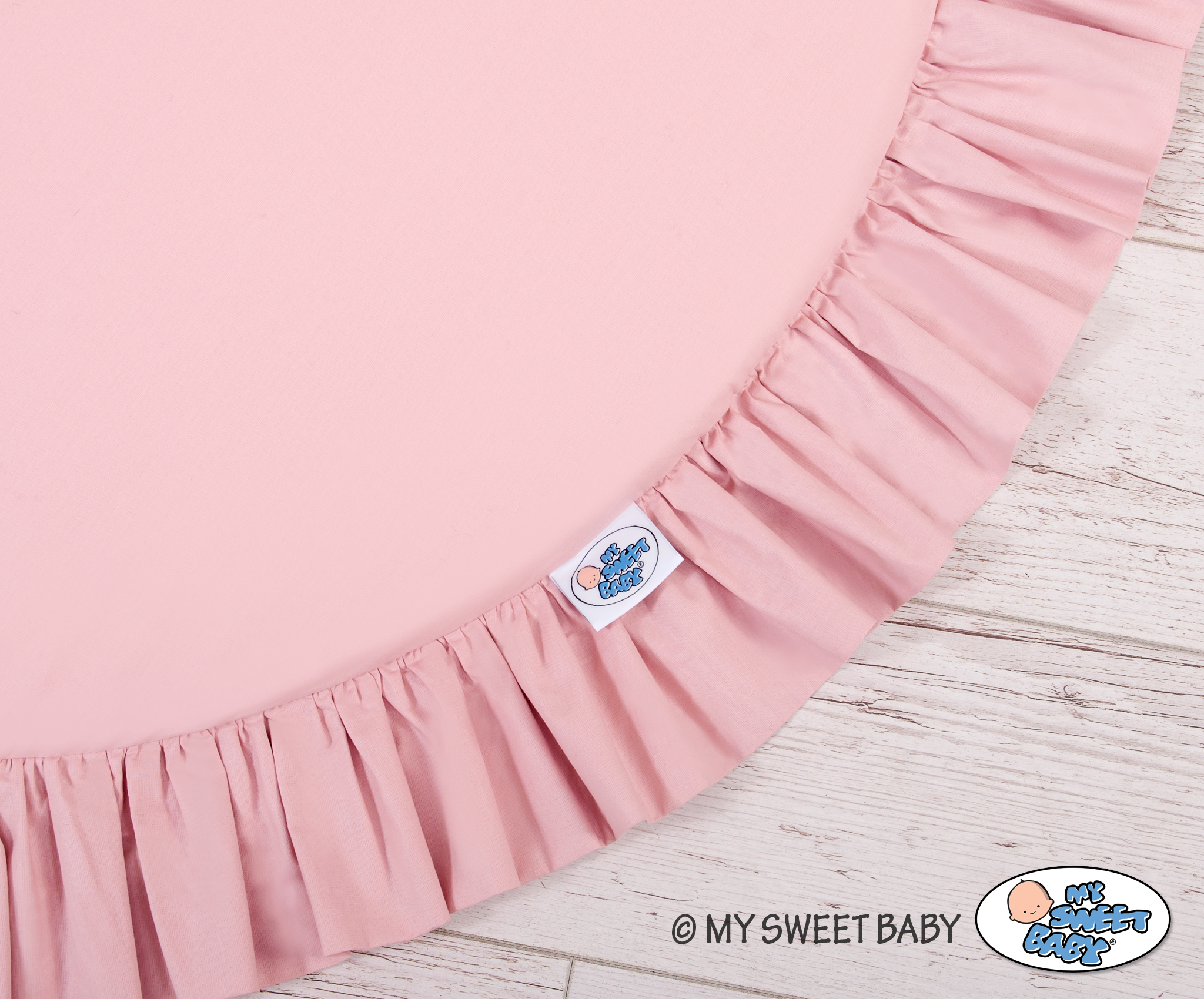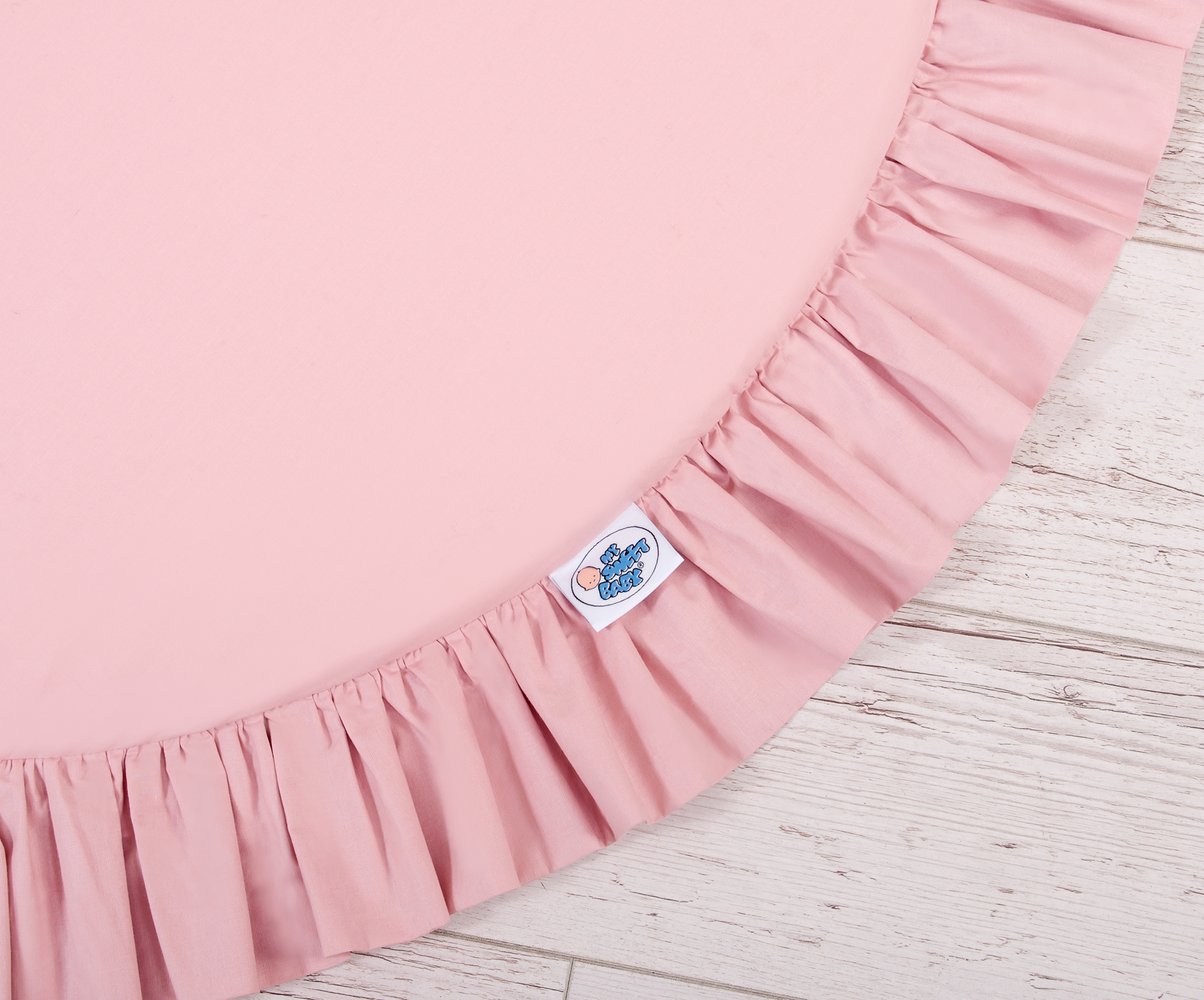 Un tapis de jeu de sol avec des volants. Il peut être utilisé comme tapis, tapis de jeu ou comme tapis de sol pour le long baldaquin. Dès les premiers jours de la vie, il peut être utilisé comme lieu de repos ou comme tapis de jeu pour le temps du passage sur le ventre. Il a un rembourrage souple qui l'isole parfaitement du sol dur et froid. La couverture est fabriquée en coton 100% certifié OKOTEX. Le dessous du tapis de jeu est fait d'un matériau moderne, antiallergique et attesté. Le fond peut être retiré et la couverture peut être lavée.