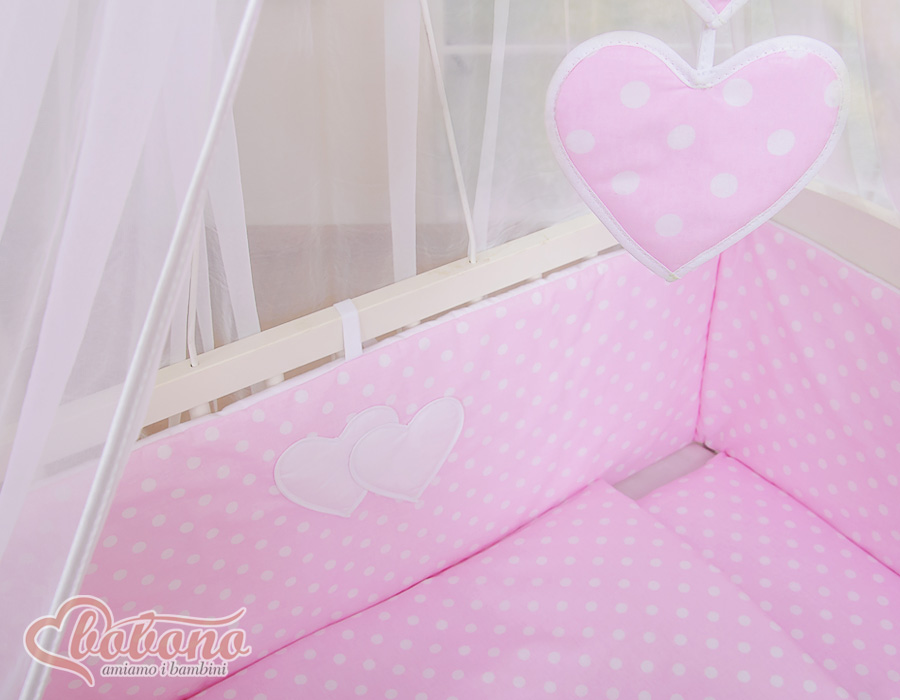 Textile Complete pour Lit de Cododo Rose à Pois Cœurs