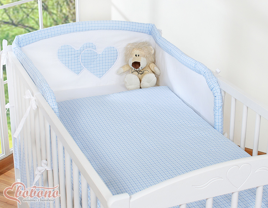 Bébé chambre » Linge de lit bébé » Linge de lit bébé Cœurs » Linge de lit bébé 120cm Cœurs » Tour de lit bébé » Tour de Lit Bébé a Barreaux Bleu à Carreaux Cœurs