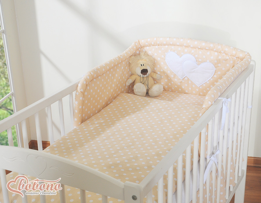 Bébé chambre » Linge de lit bébé » Linge de lit bébé Cœurs » Linge de lit bébé 140cm Cœurs » Tours de lit bébé » Tour de Lit Bébé Beige à Pois Cœurs