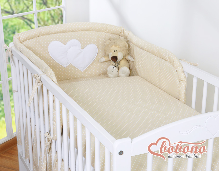 Bébé chambre » Linge de lit bébé » Linge de lit bébé Cœurs » Linge de lit bébé 120cm Cœurs » Tour de lit bébé » Tour de Lit Bébé Beige à Pois Cœurs