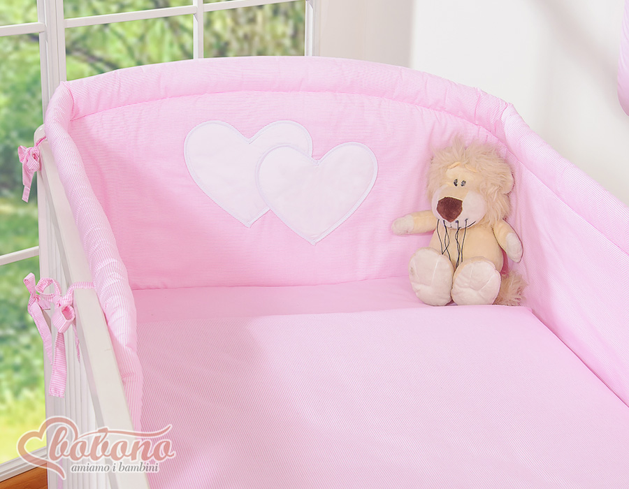 Bébé chambre » Linge de lit bébé » Linge de lit bébé Cœurs » Linge de lit bébé 120cm Cœurs » Tour de lit bébé » Tour de Lit Bébé Rose Rayures Cœurs