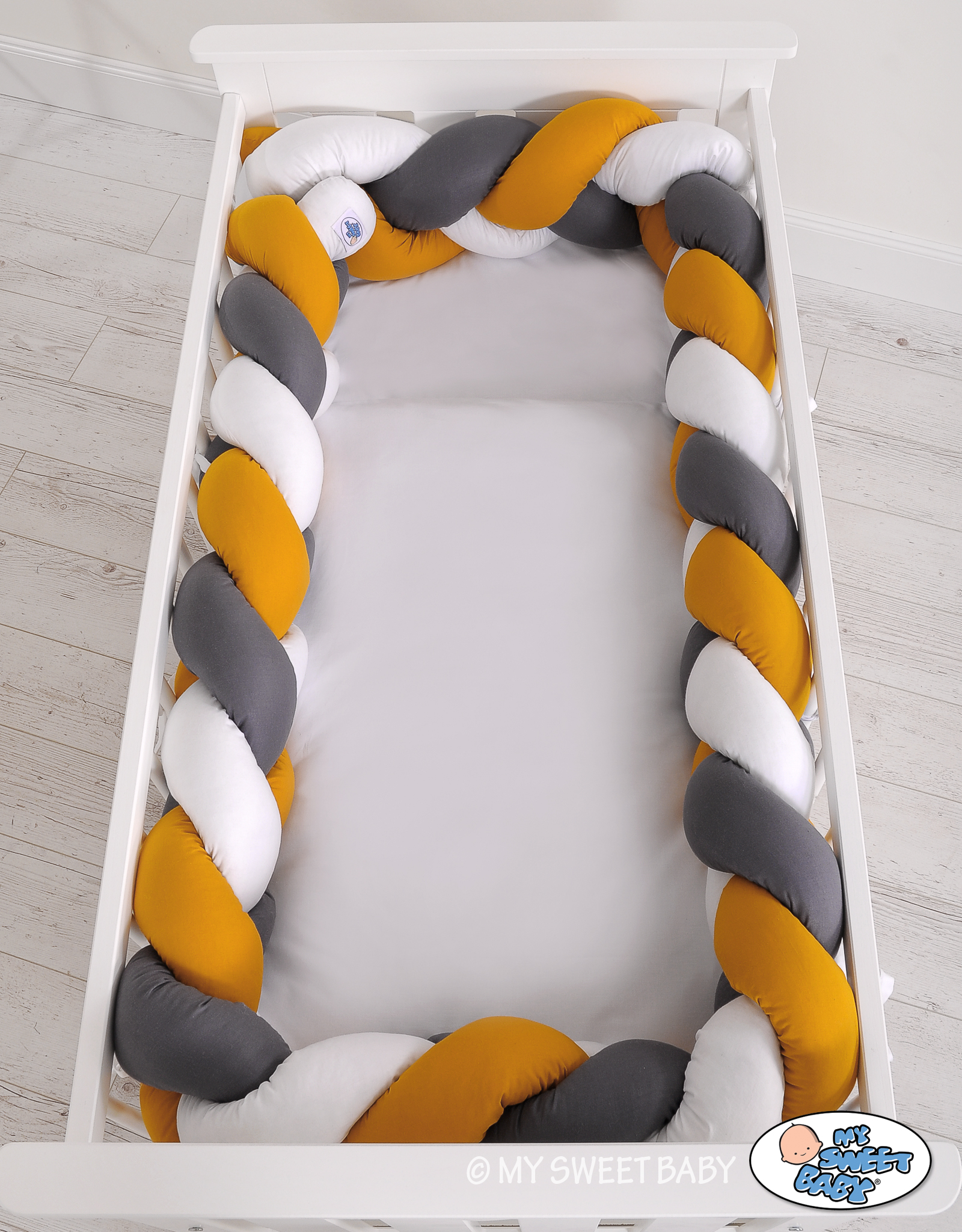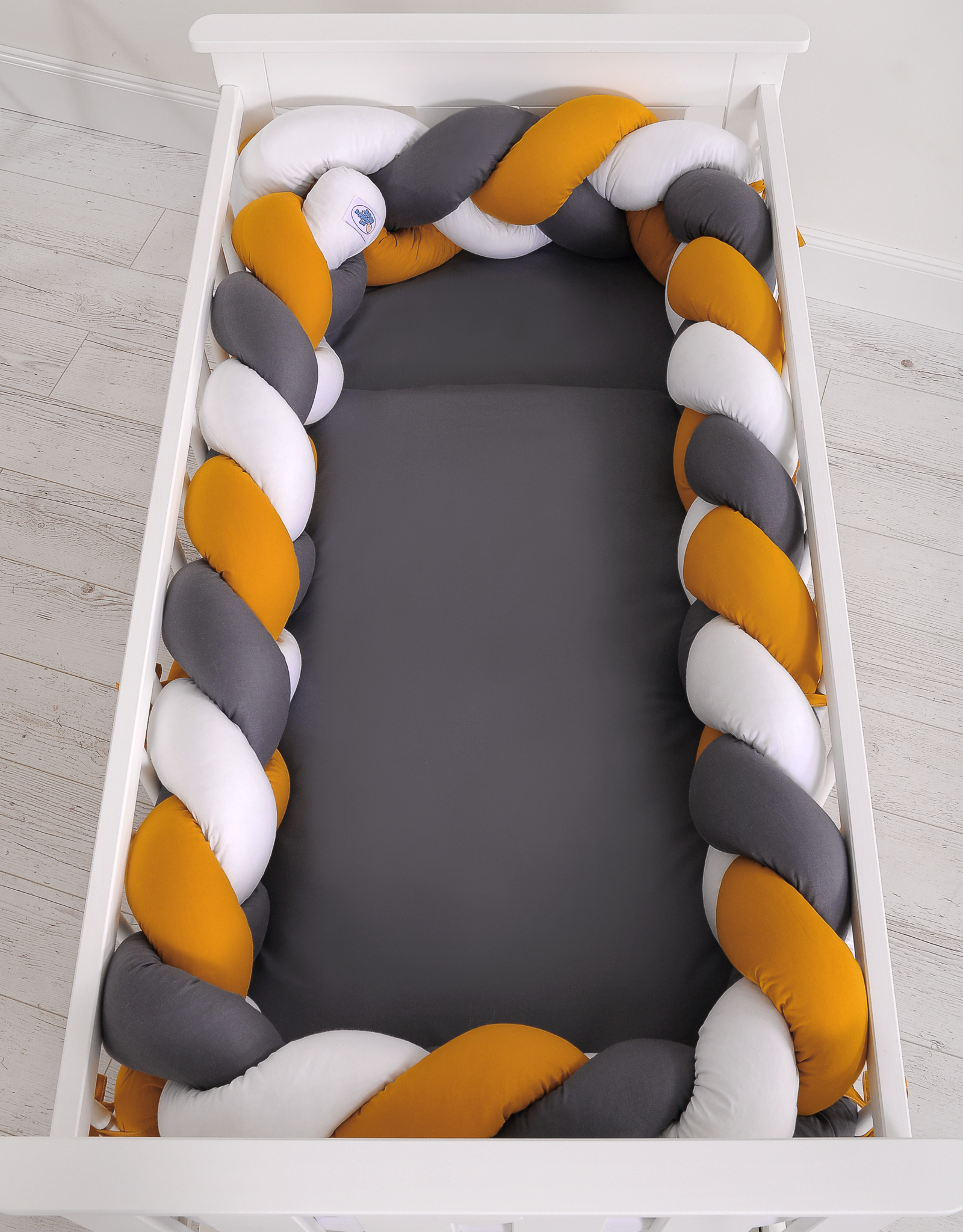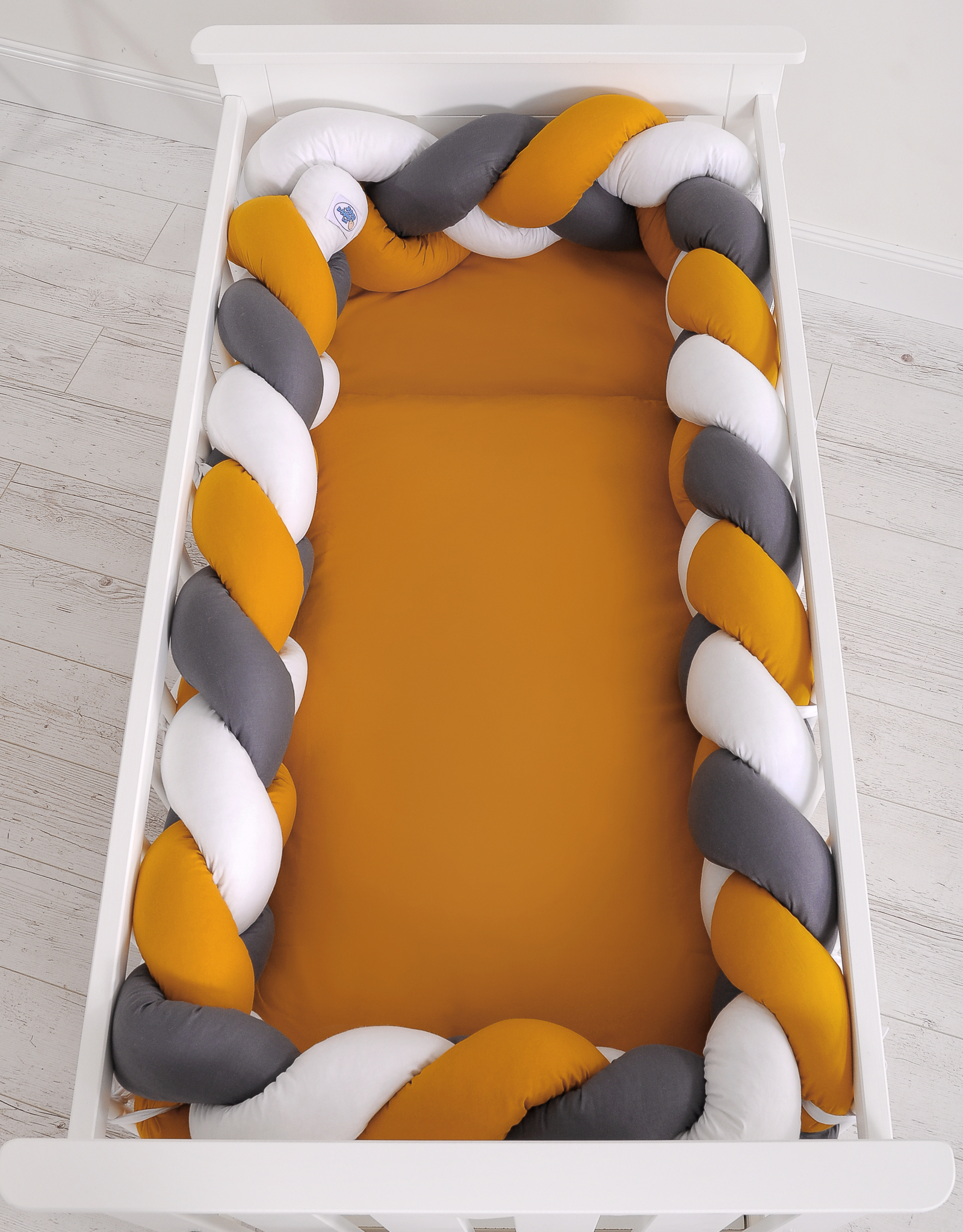 Magnifique tour de lit tressé très doux en 100% coton. Peut être fixé sur les barreaux.