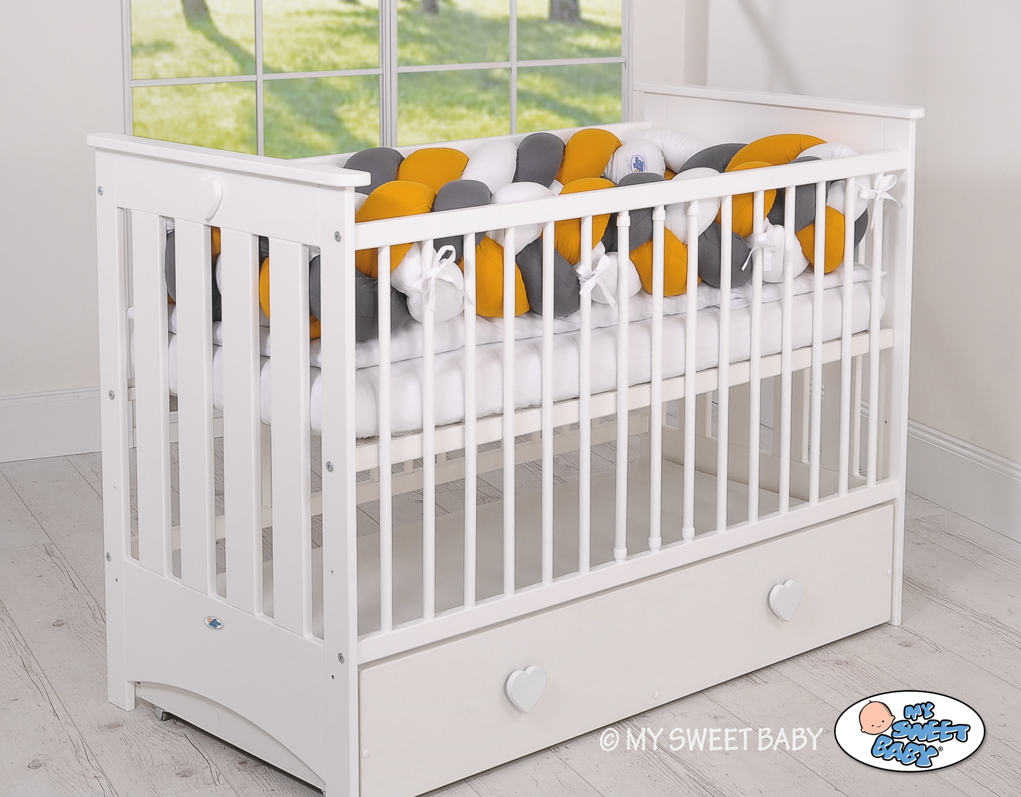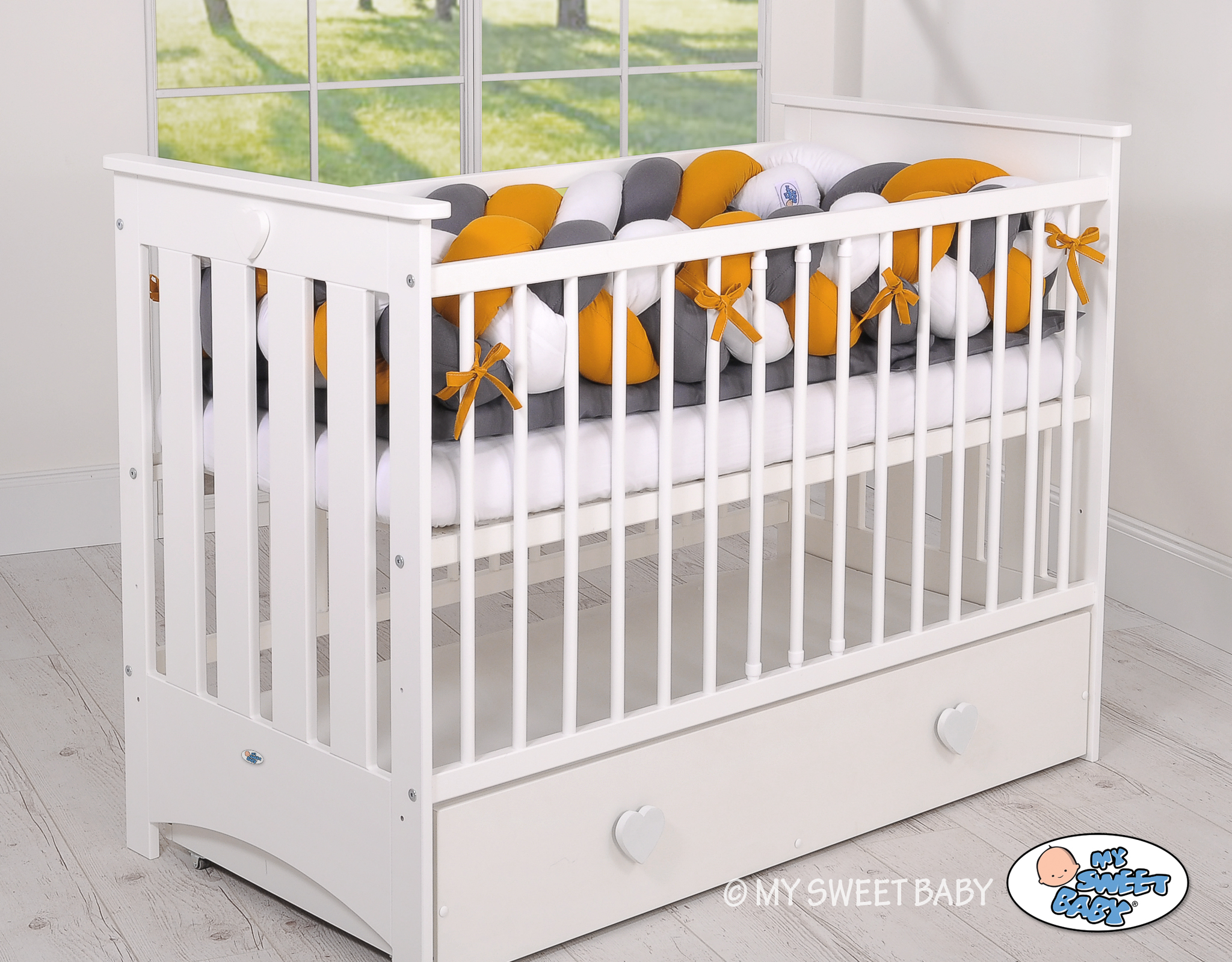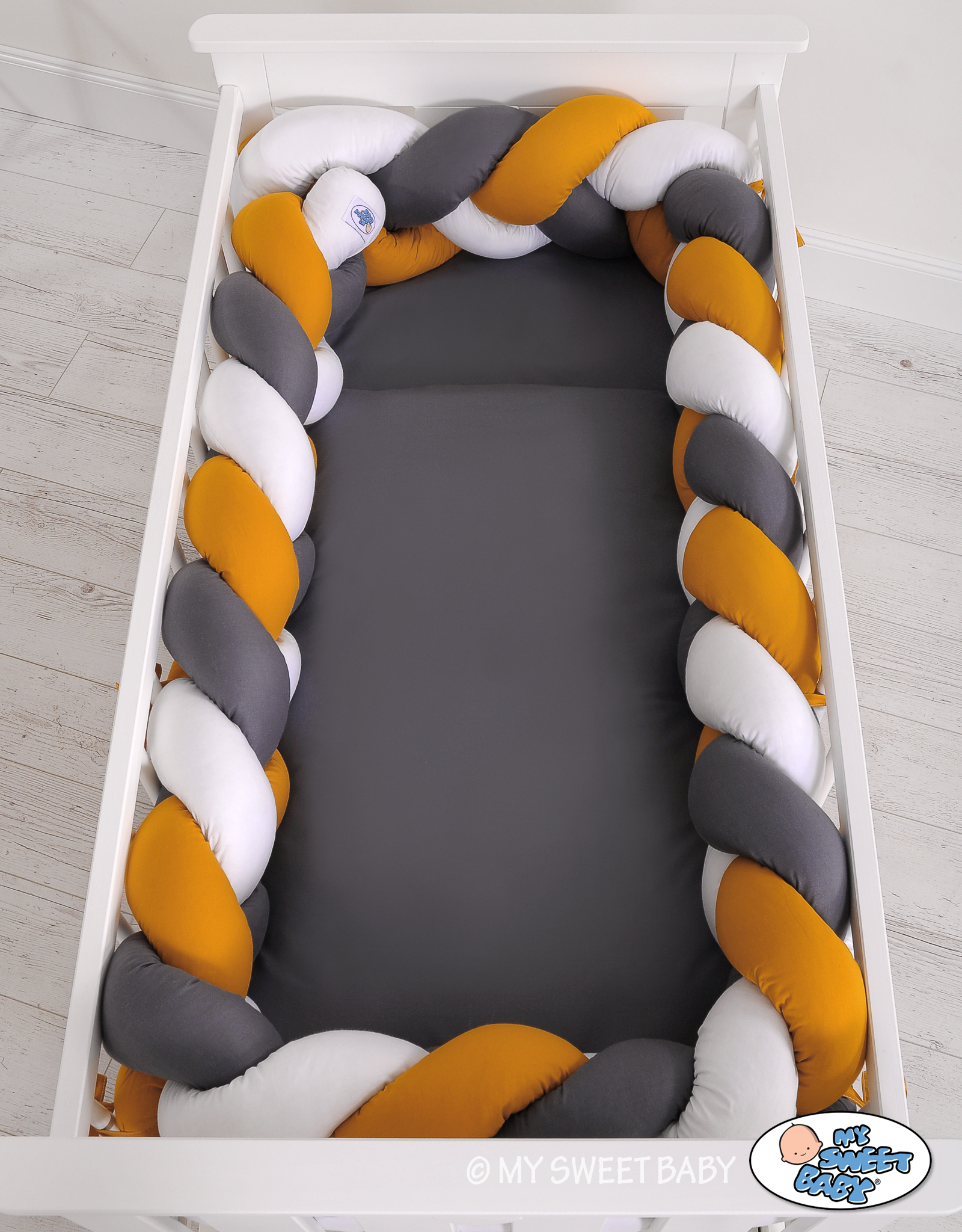 Magnifique tour de lit tressé très doux en 100% coton. Peut être fixé sur les barreaux.