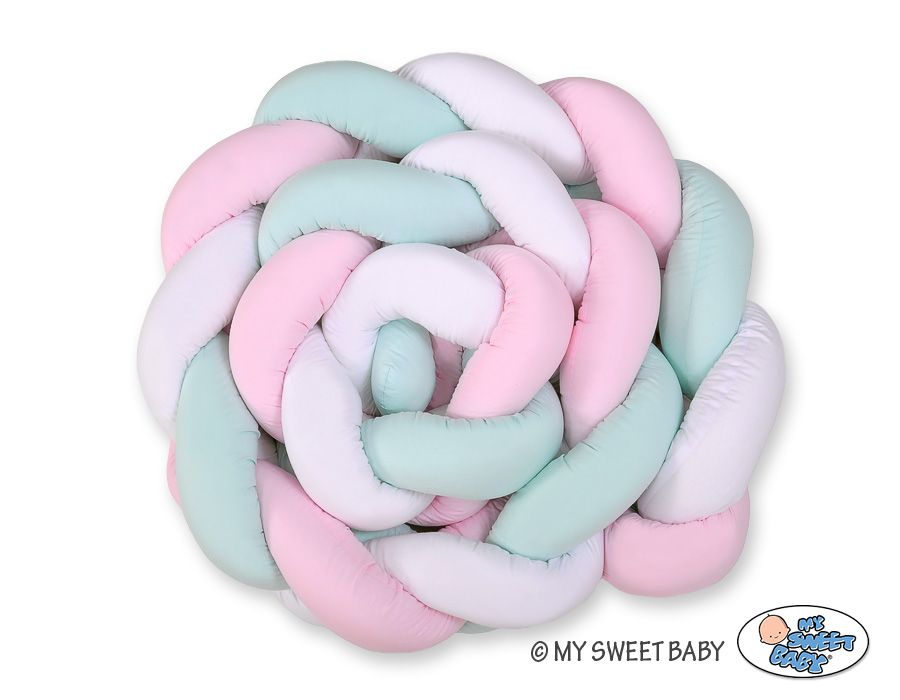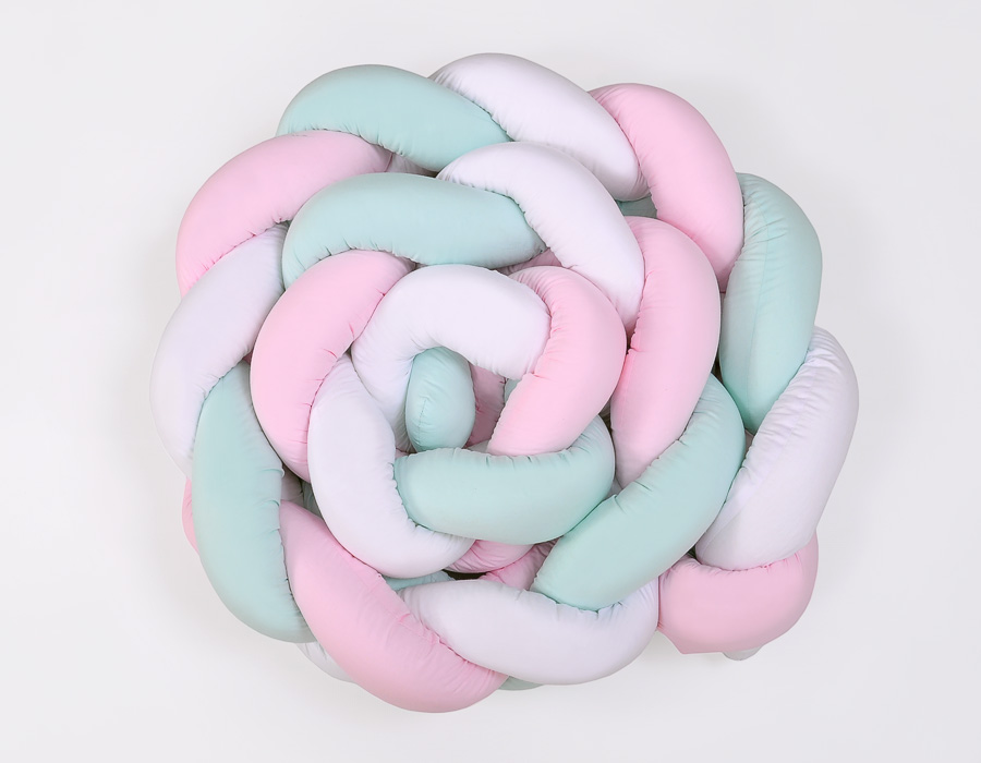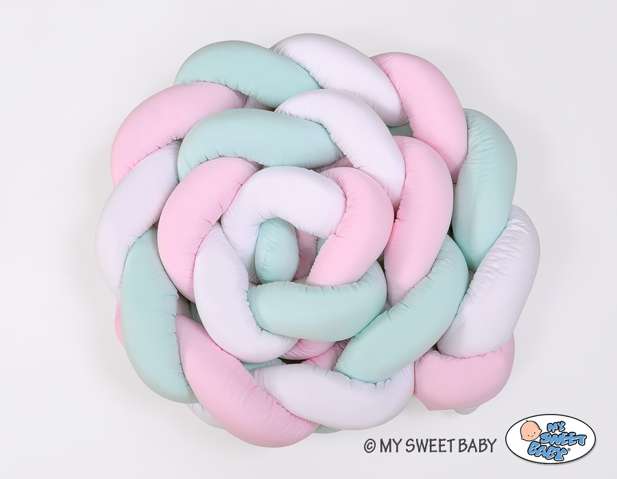 Bébé chambre » Collection tressé Magic Loop » Tours de lit tressé » Tour de Lit Bébé Tressé Extra Long 3,6m Menthe Rose Blanc