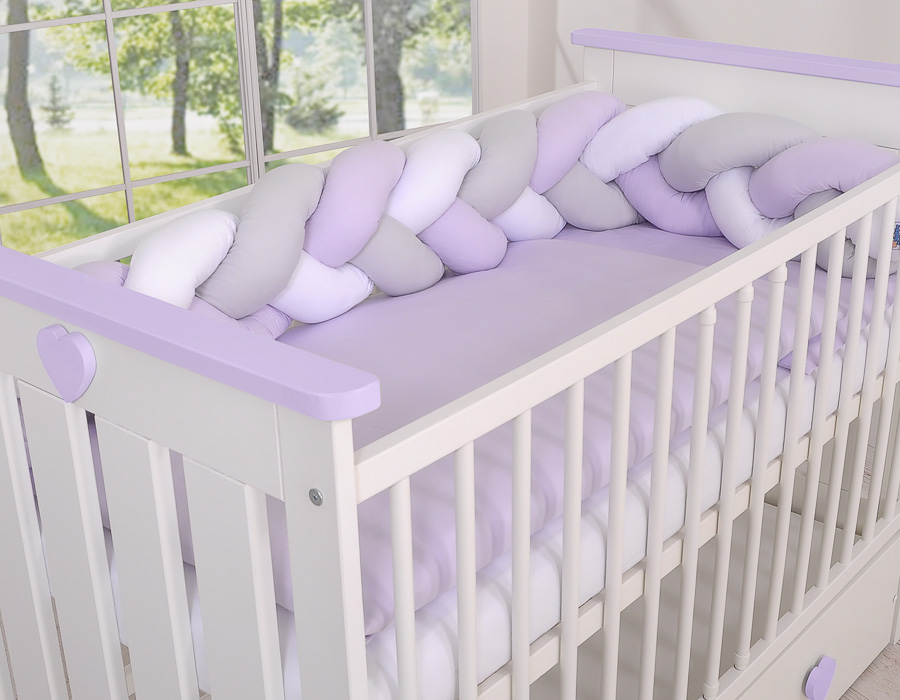Tour de Lit Bébé Tressé  OEKO-TEX Blanc Gris Lila