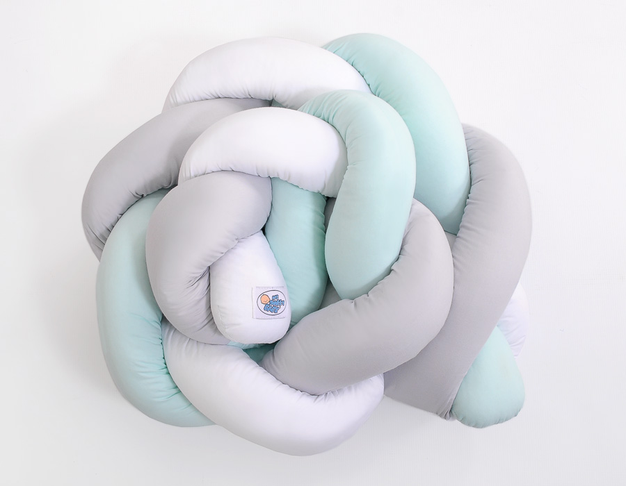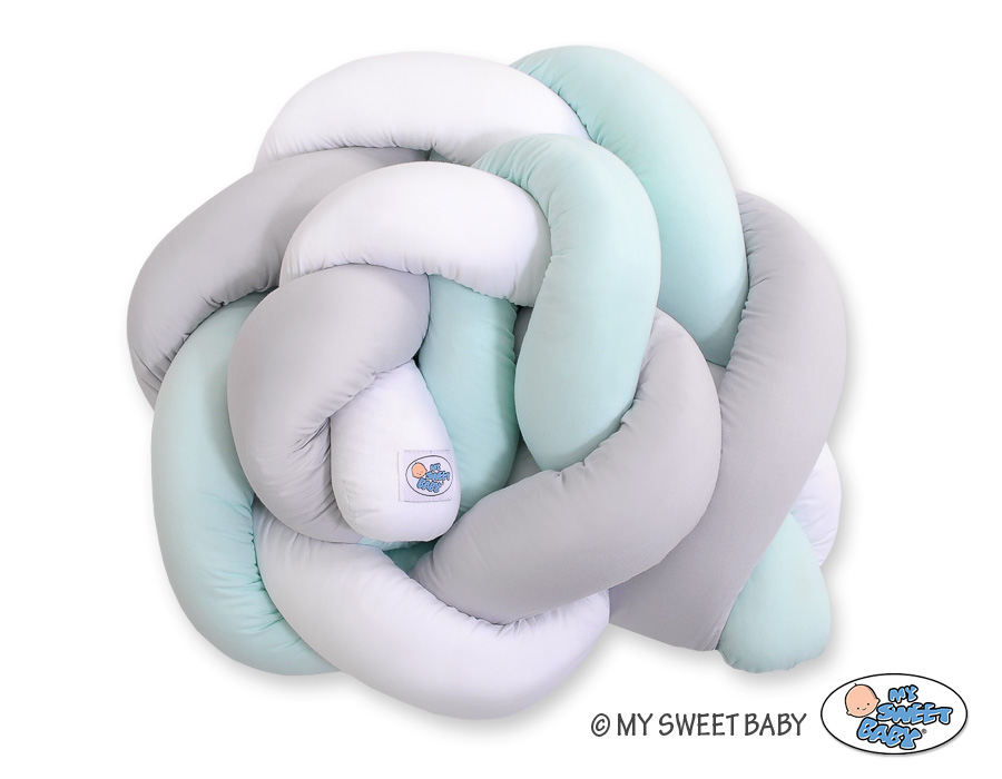 Bébé chambre » Collection tressé Magic Loop » Tours de lit tressé » Tour de Lit Tressé 1,8m Menthe Blanc Gris